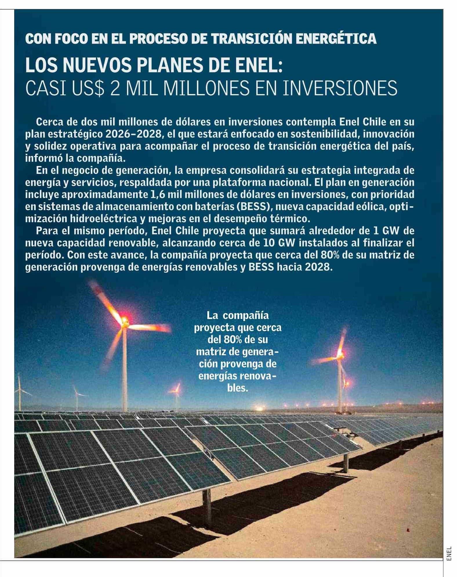 LOS NUEVOS PLANES DE ENEL: CASI US$ 2 MIL MILLONES EN INVERSIONES