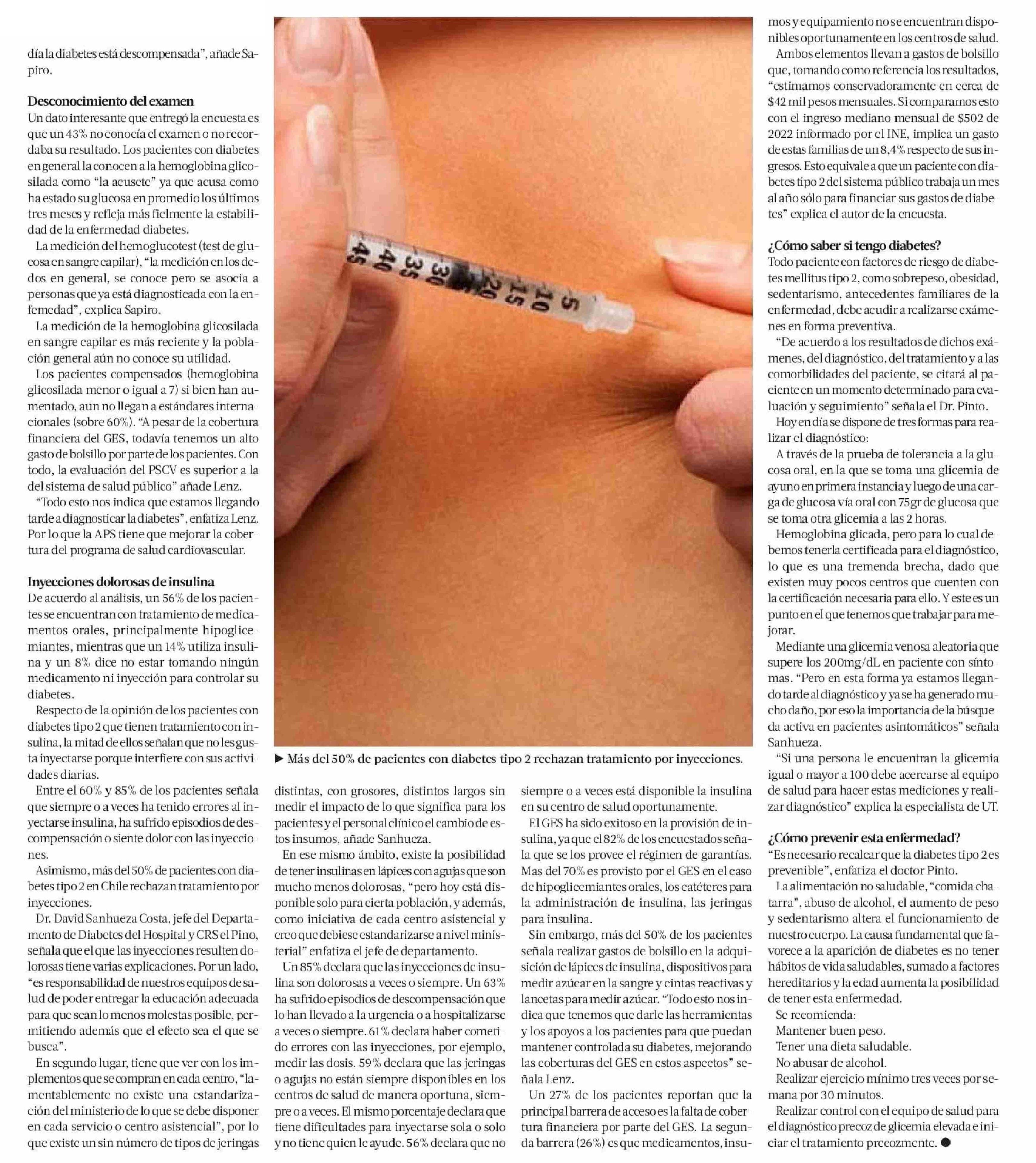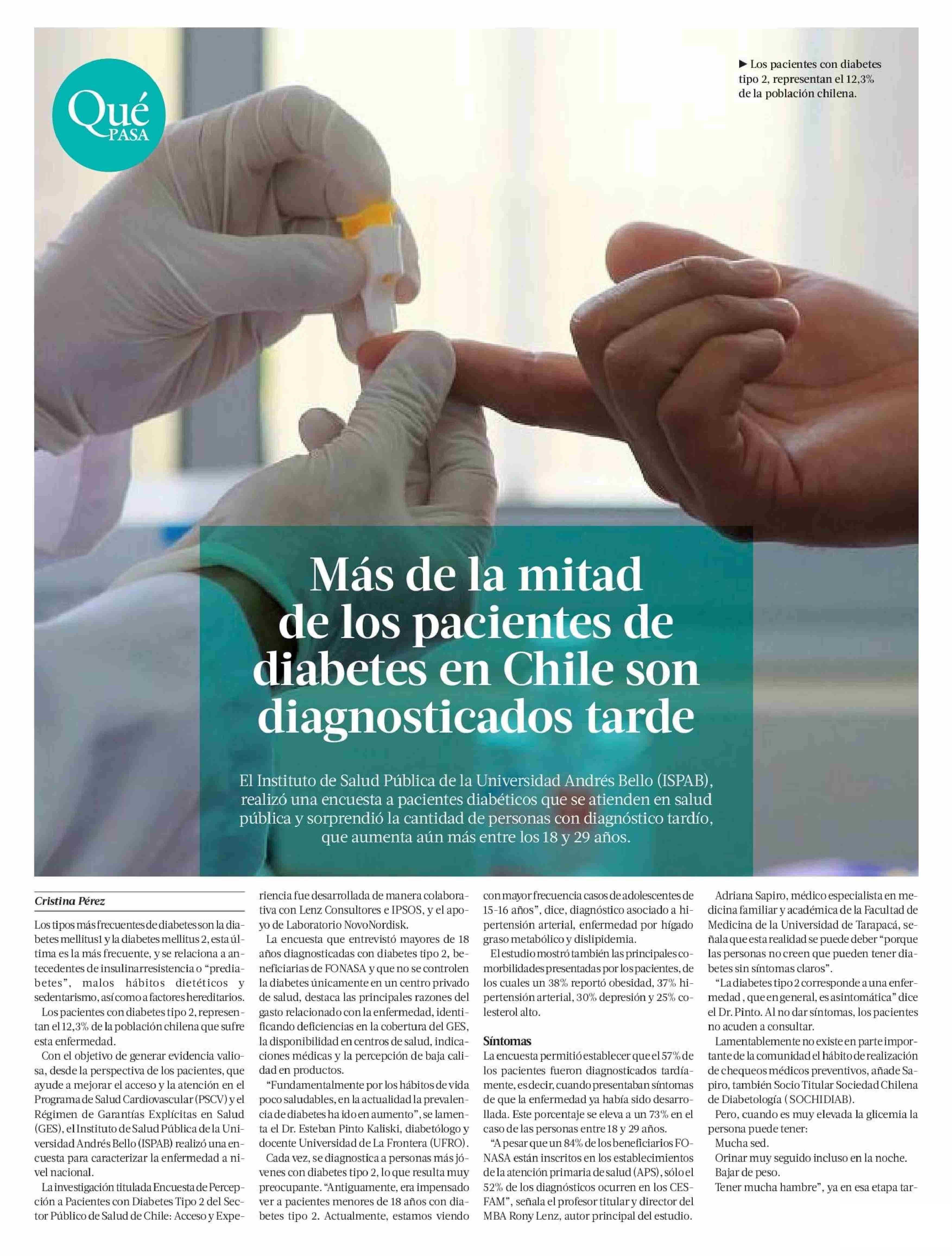 Más de la mitad de los pacientes de diabetes en Chile son diagnosticados tarde