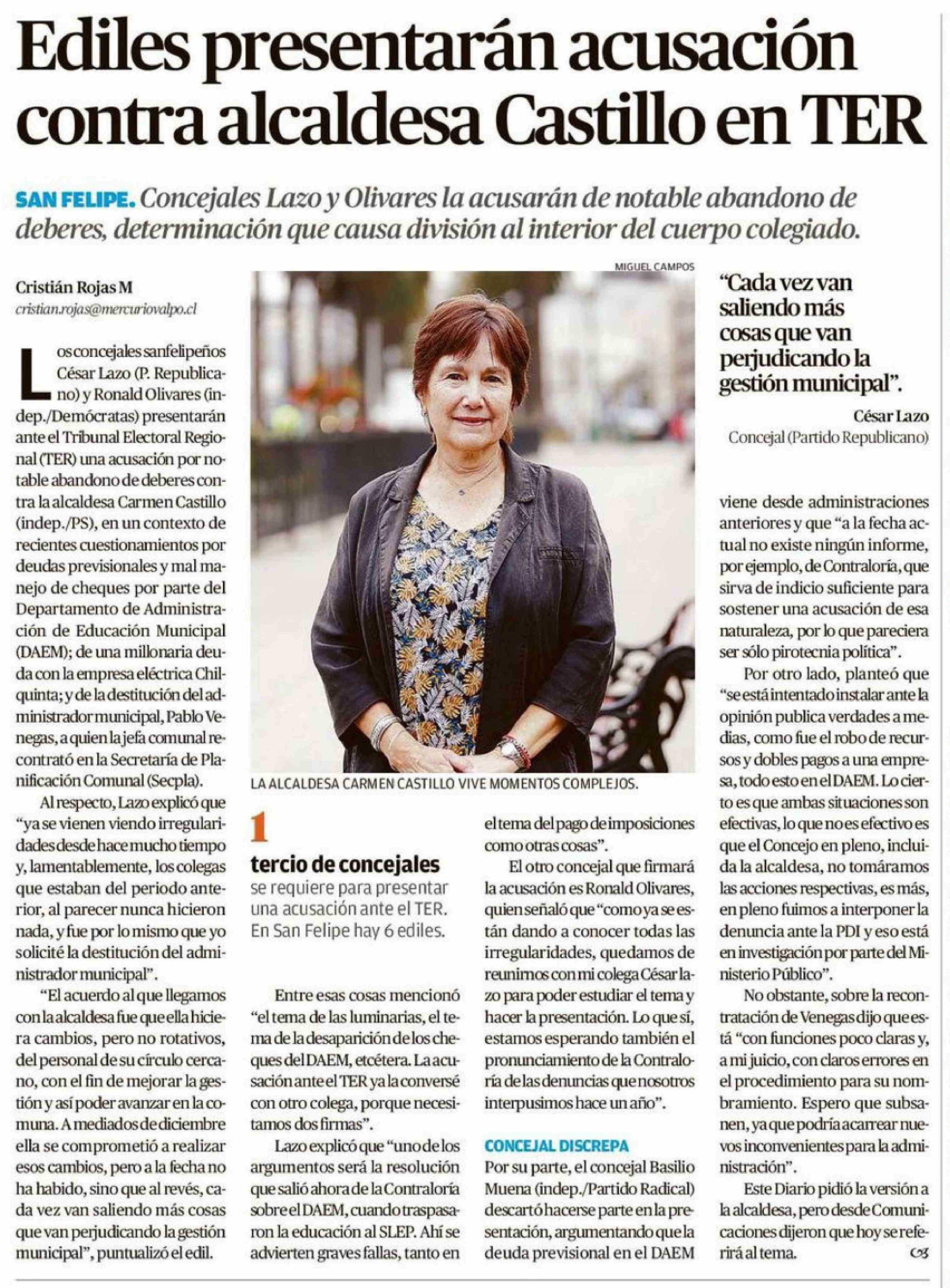 Ediles presentarán acusación contra alcaldesa Castillo en TER