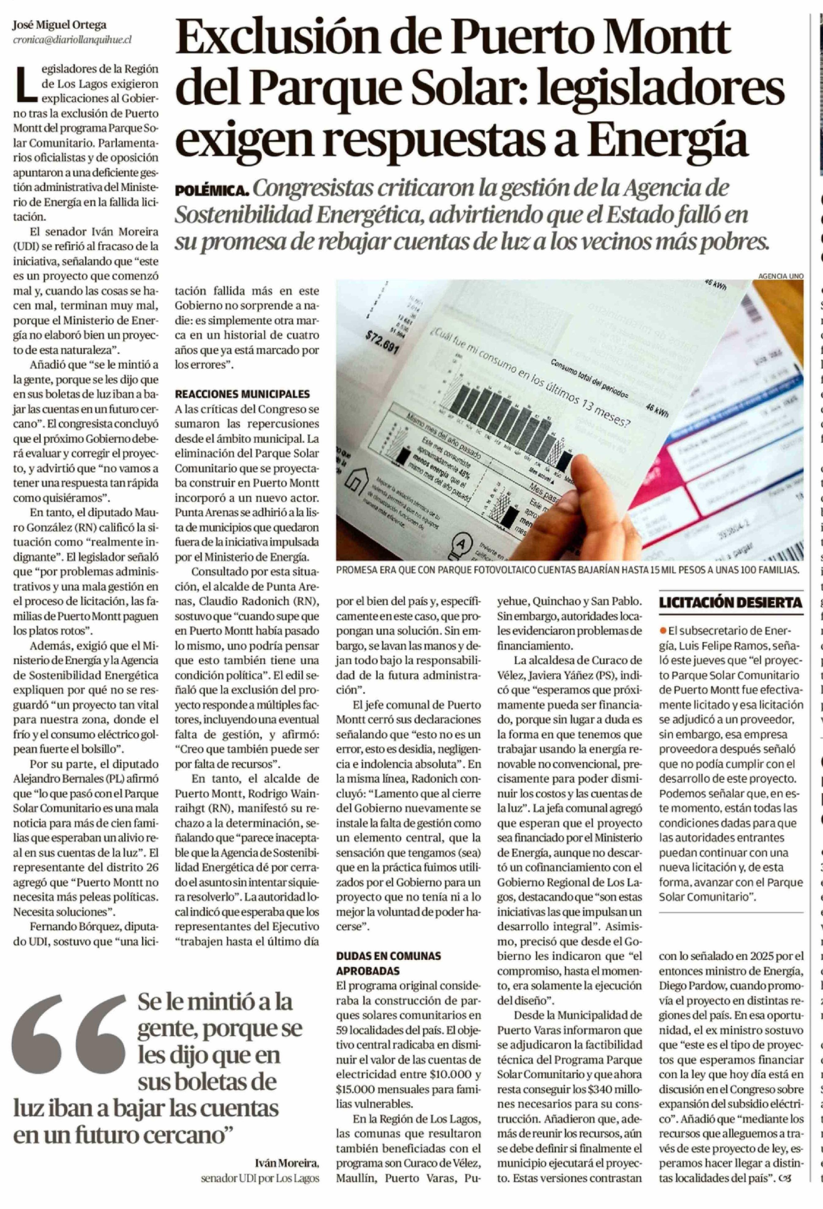 Exclusión de Puerto Montt del Parque Solar: legisladores exigen respuestas a Energía