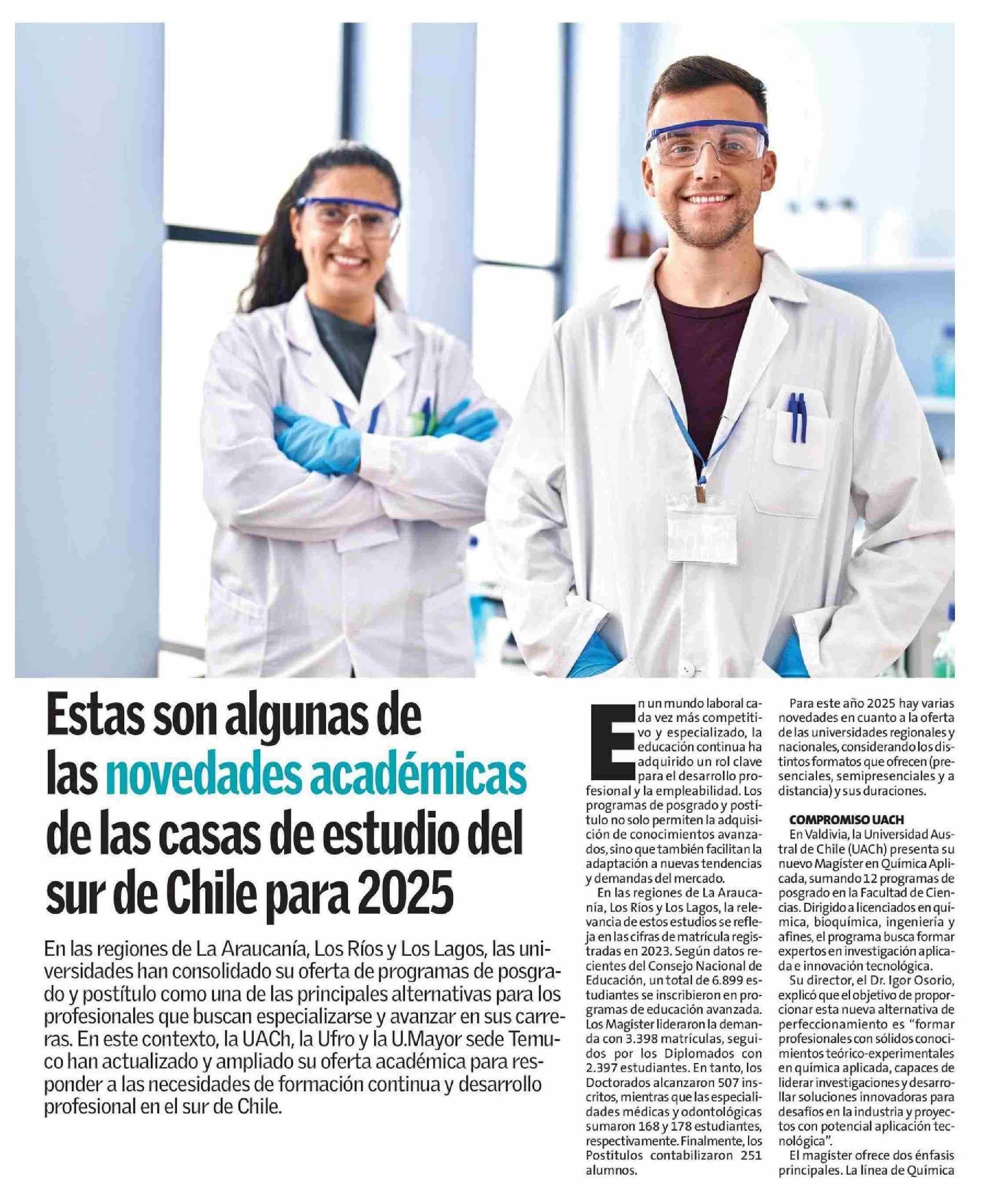Estas son algunas de las novedades académicas de las casas de estudio del sur de Chile para 2025