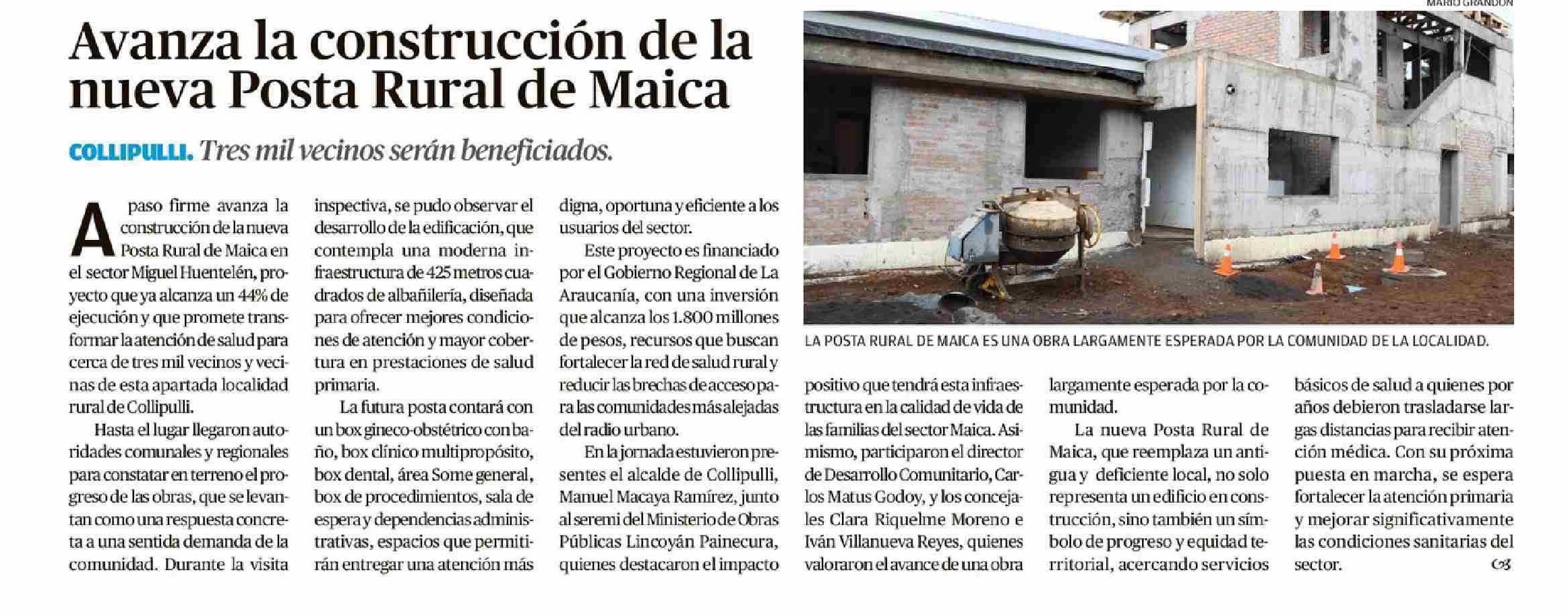 Avanza la construcción de la nueva Posta Rural de Maica
