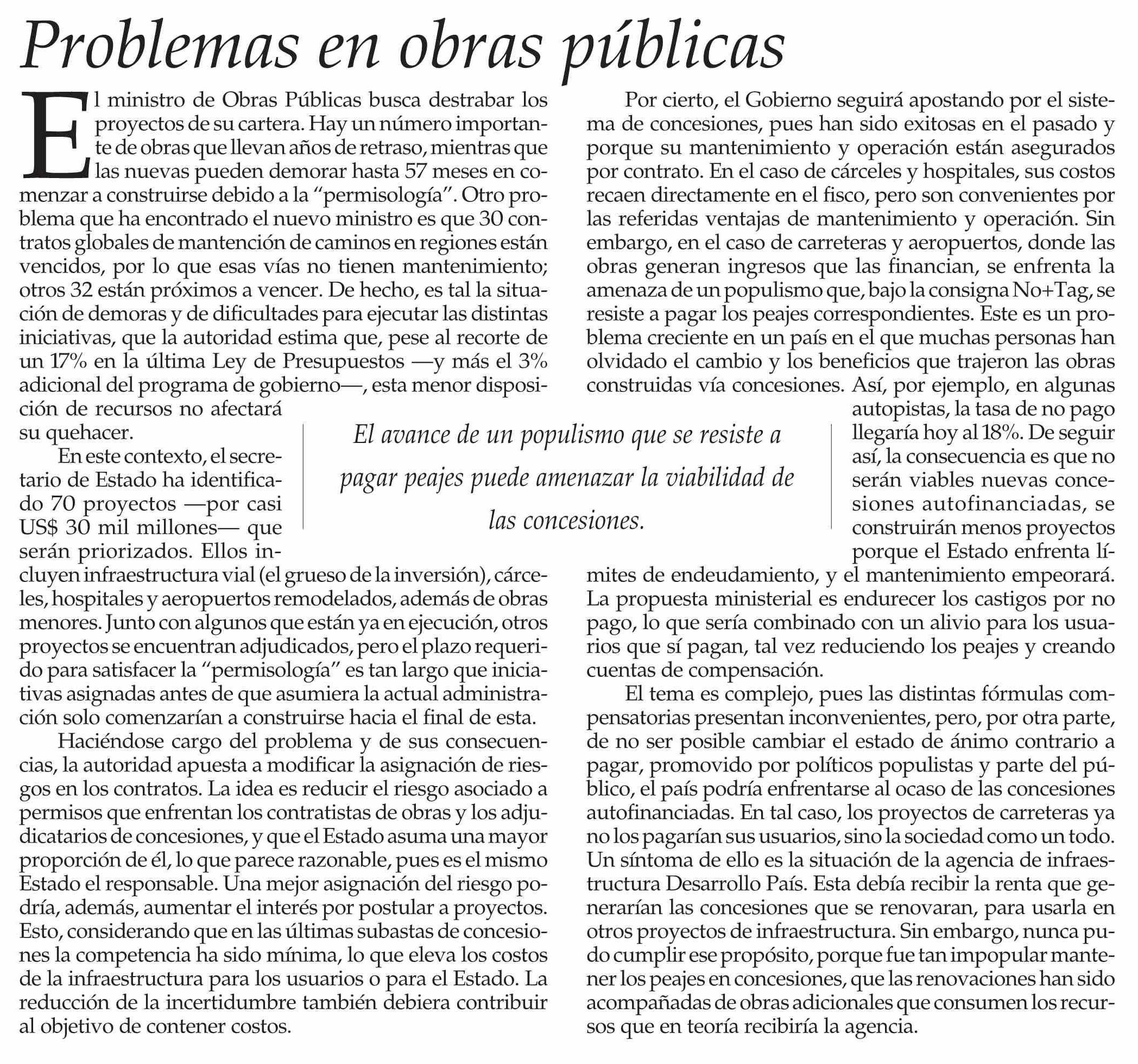Editorial: Problemas en obras públicas
