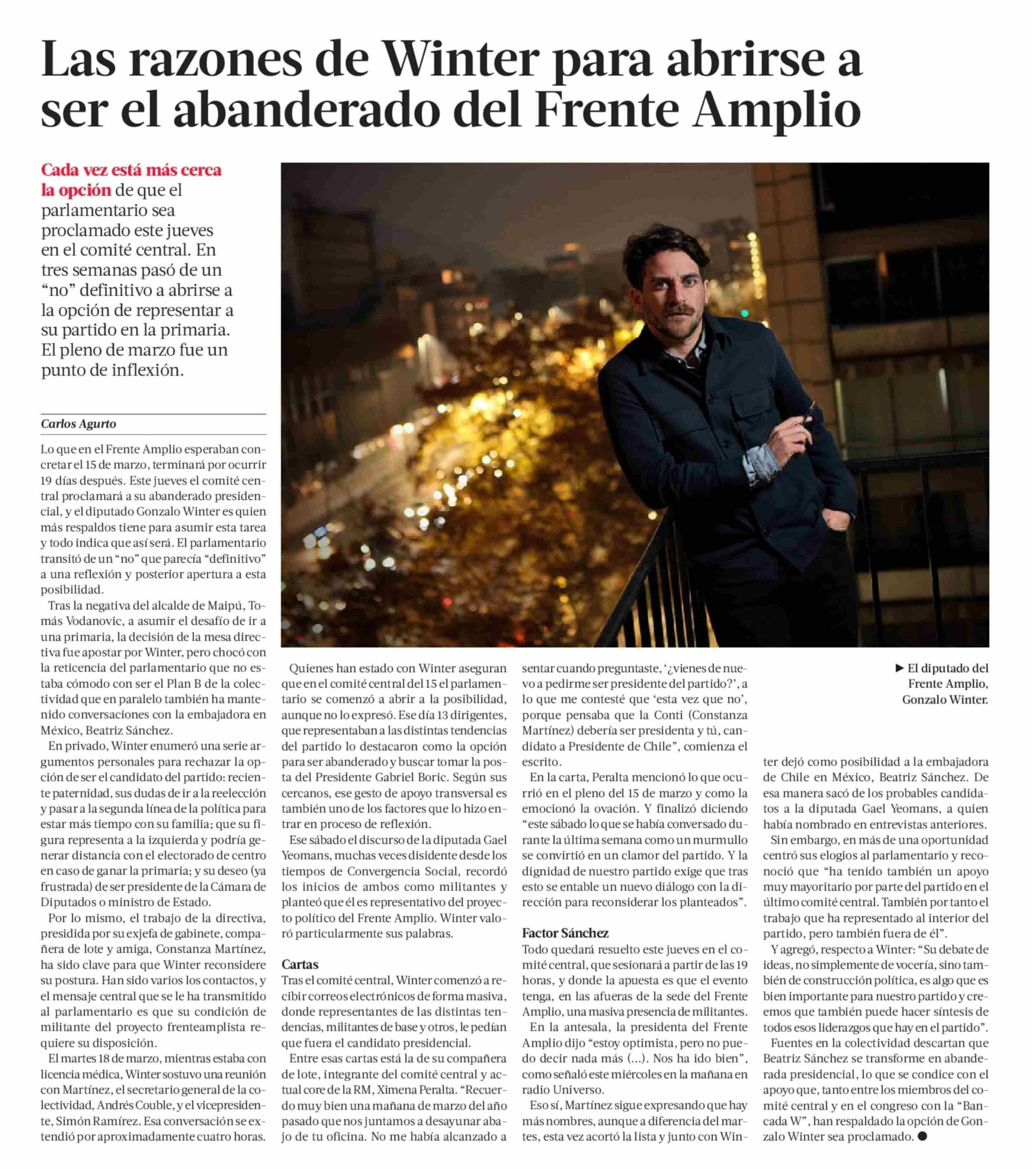 Las razones de Winter para abrirse a ser el abanderado del Frente Amplio