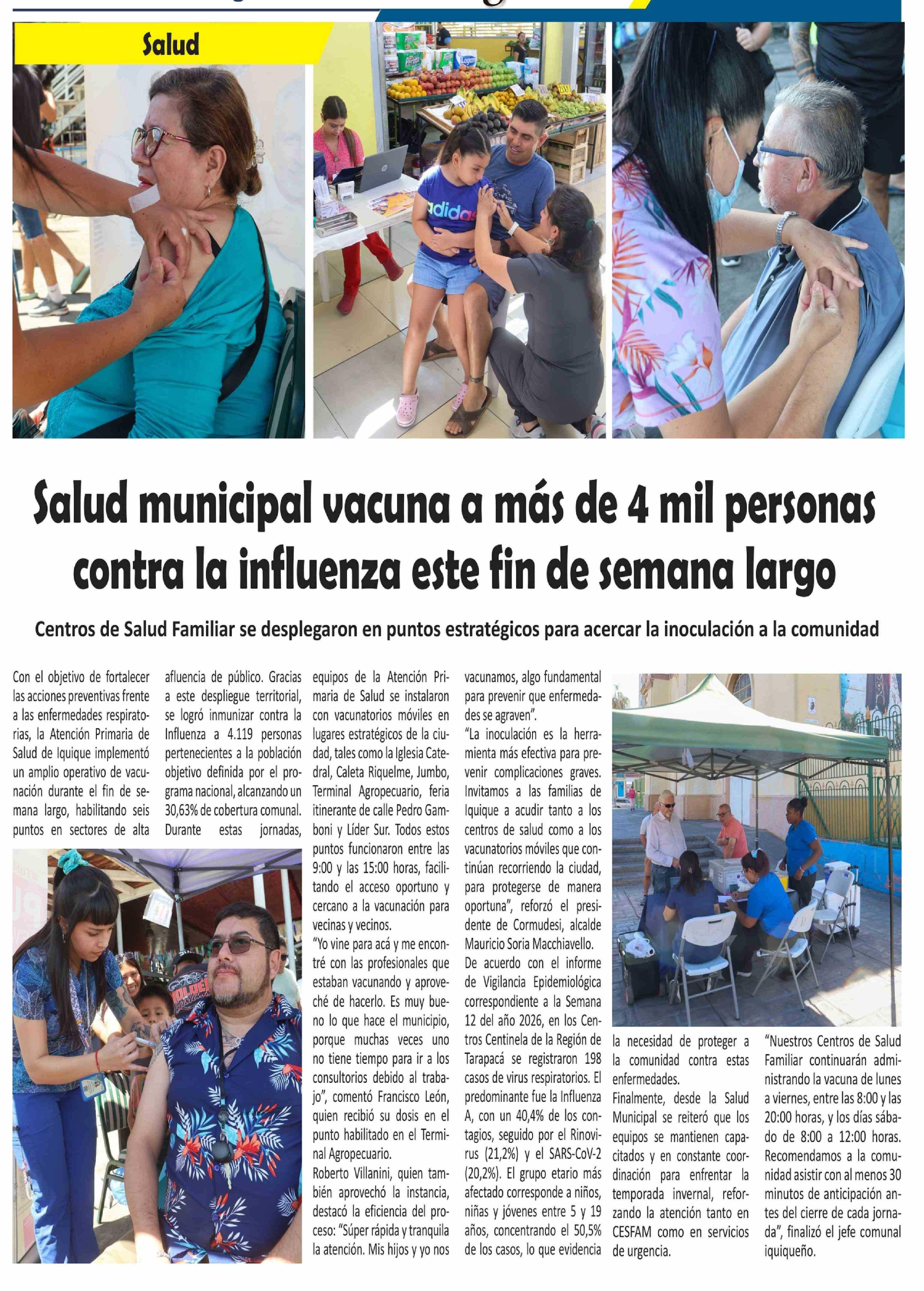 Título: Salud municipal vacuna a más de 4 mil personas contra la influenza este fin de semana largo