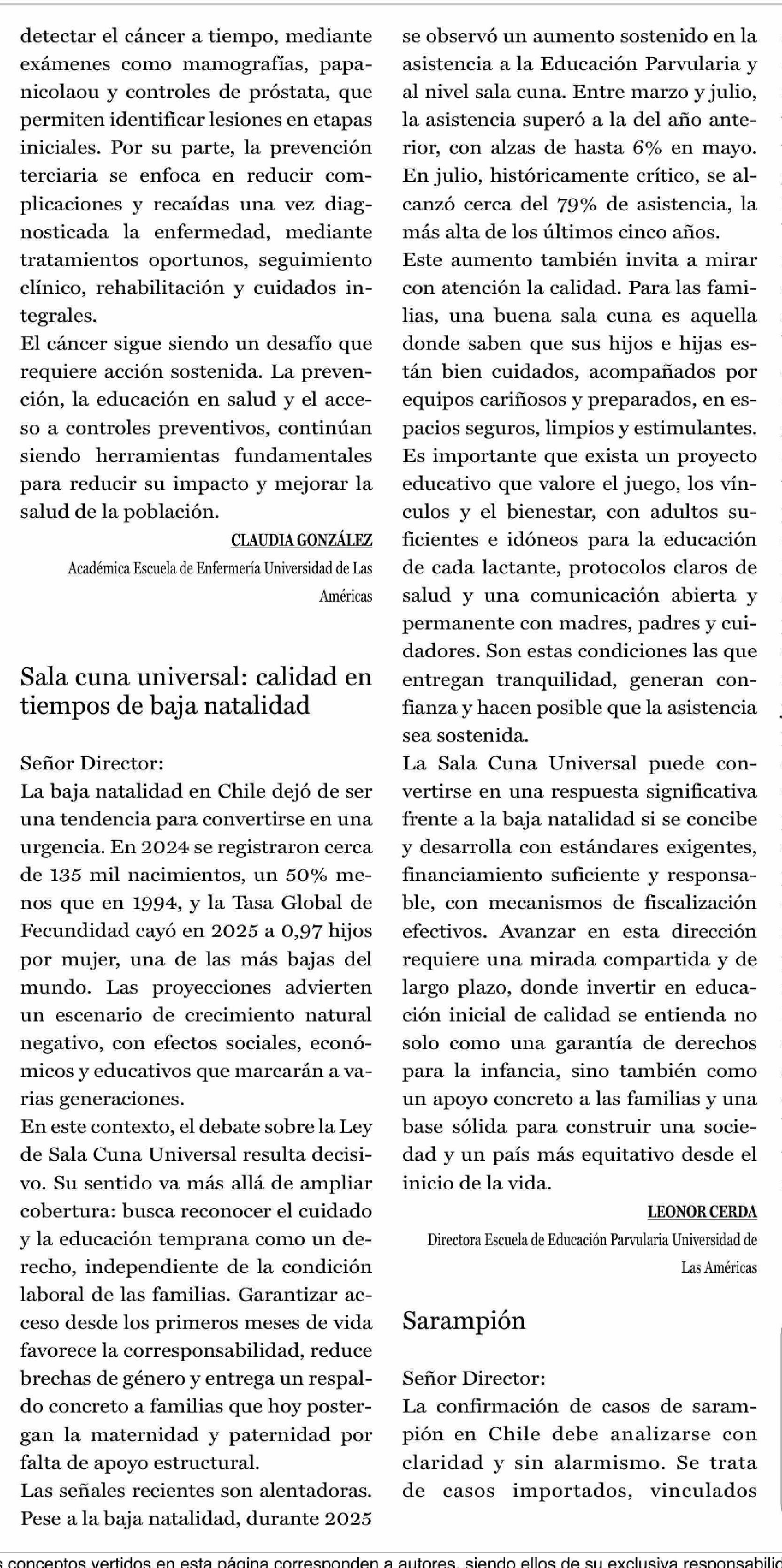 Cartas: Sala cuna universal: calidad en tiempos de baja natalidad