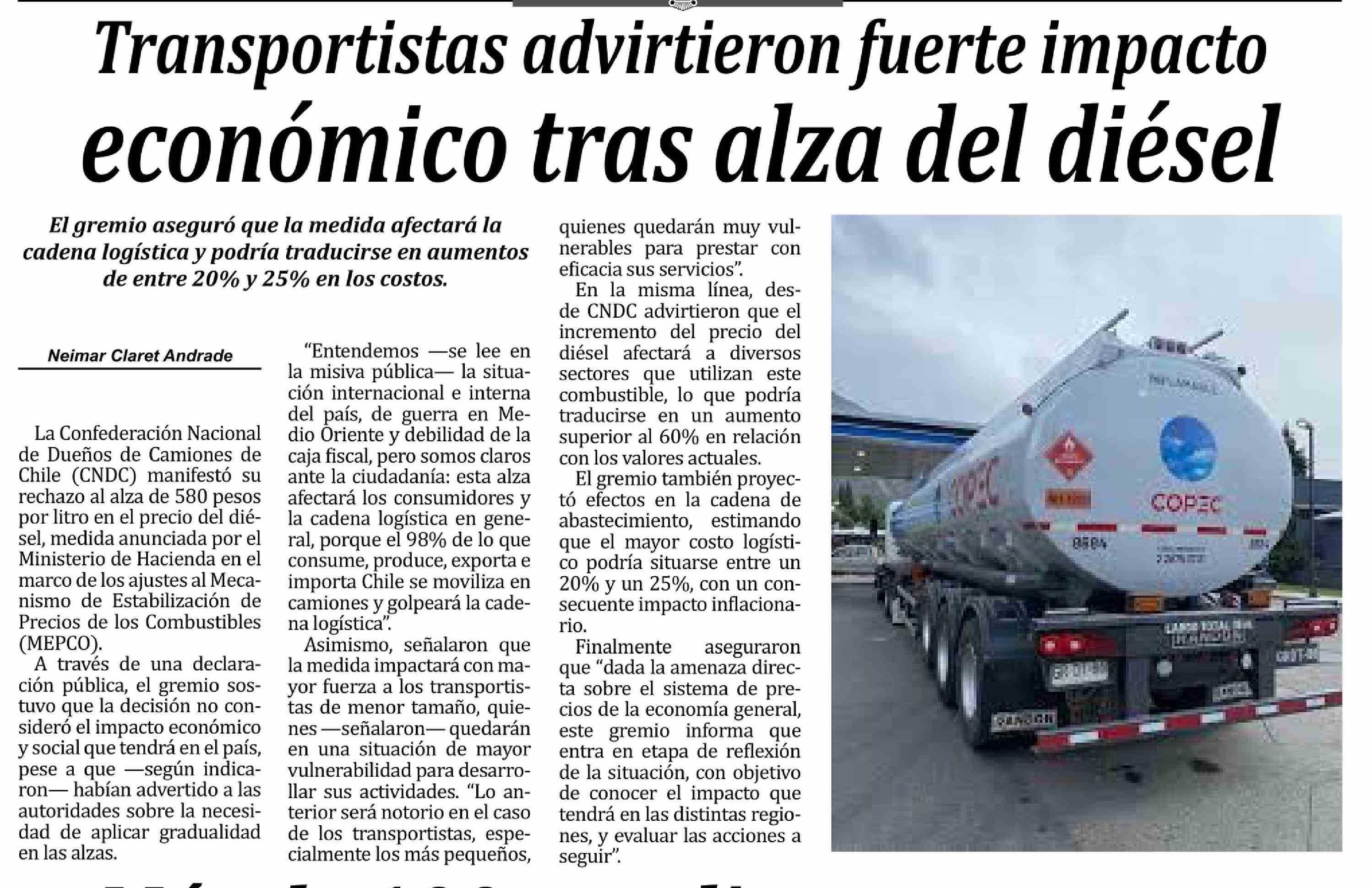 Título: Transportistas advirtieron fuerte impacto económico tras alza del diésel