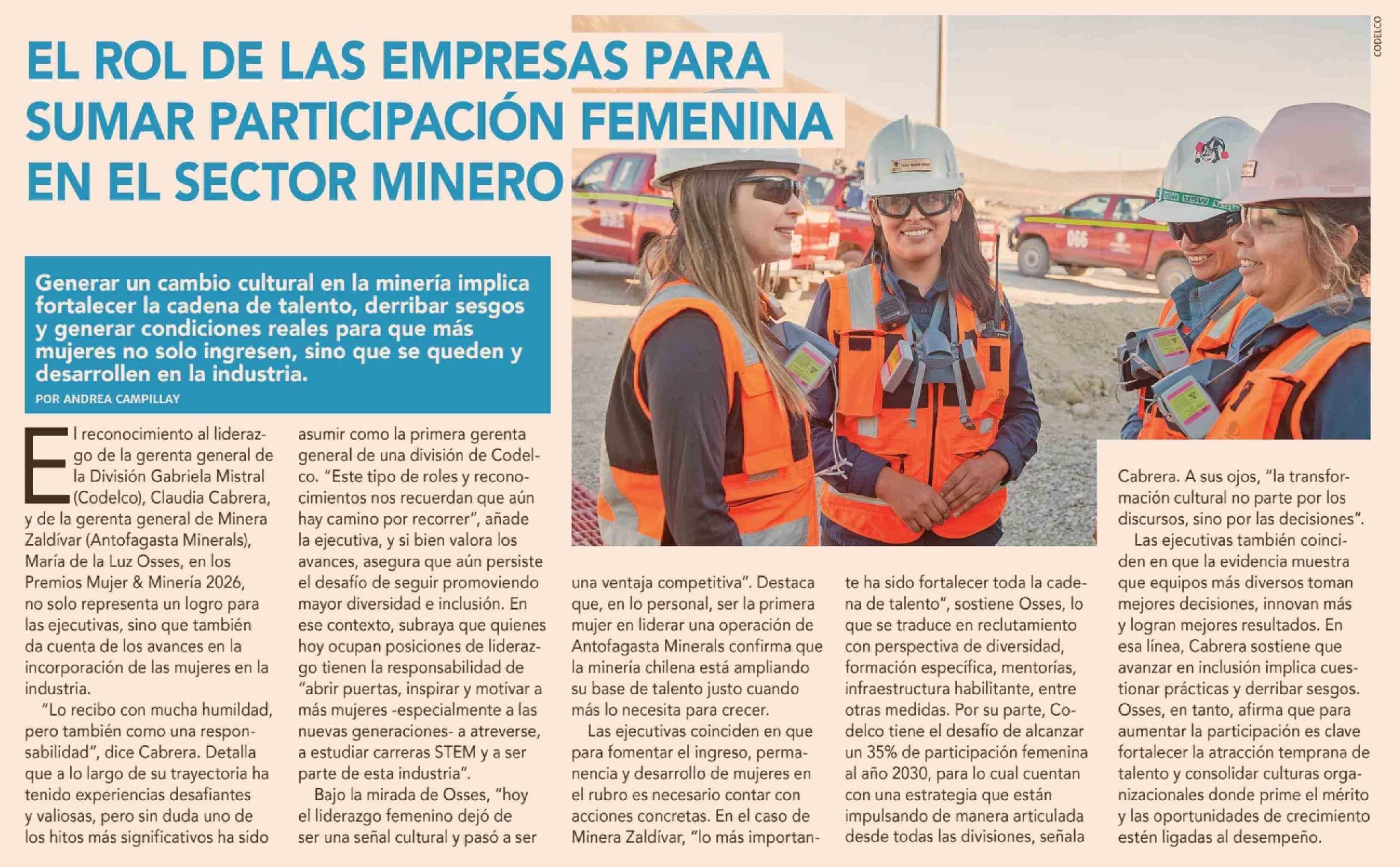 EL ROL DE LAS EMPRESAS PARA SUMAR PARTICIPACIÓN FEMENINA EN EL SECTOR MINERO