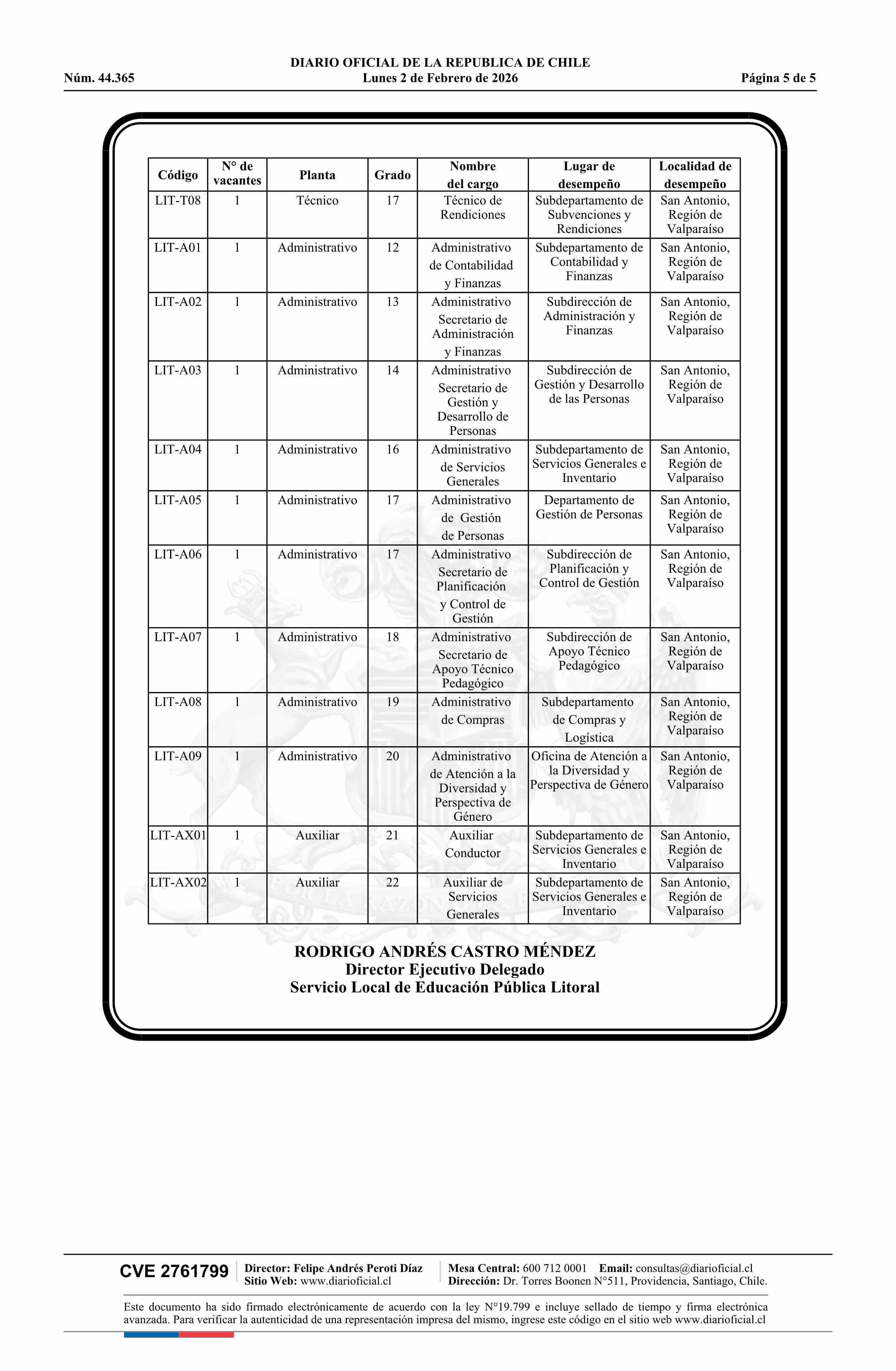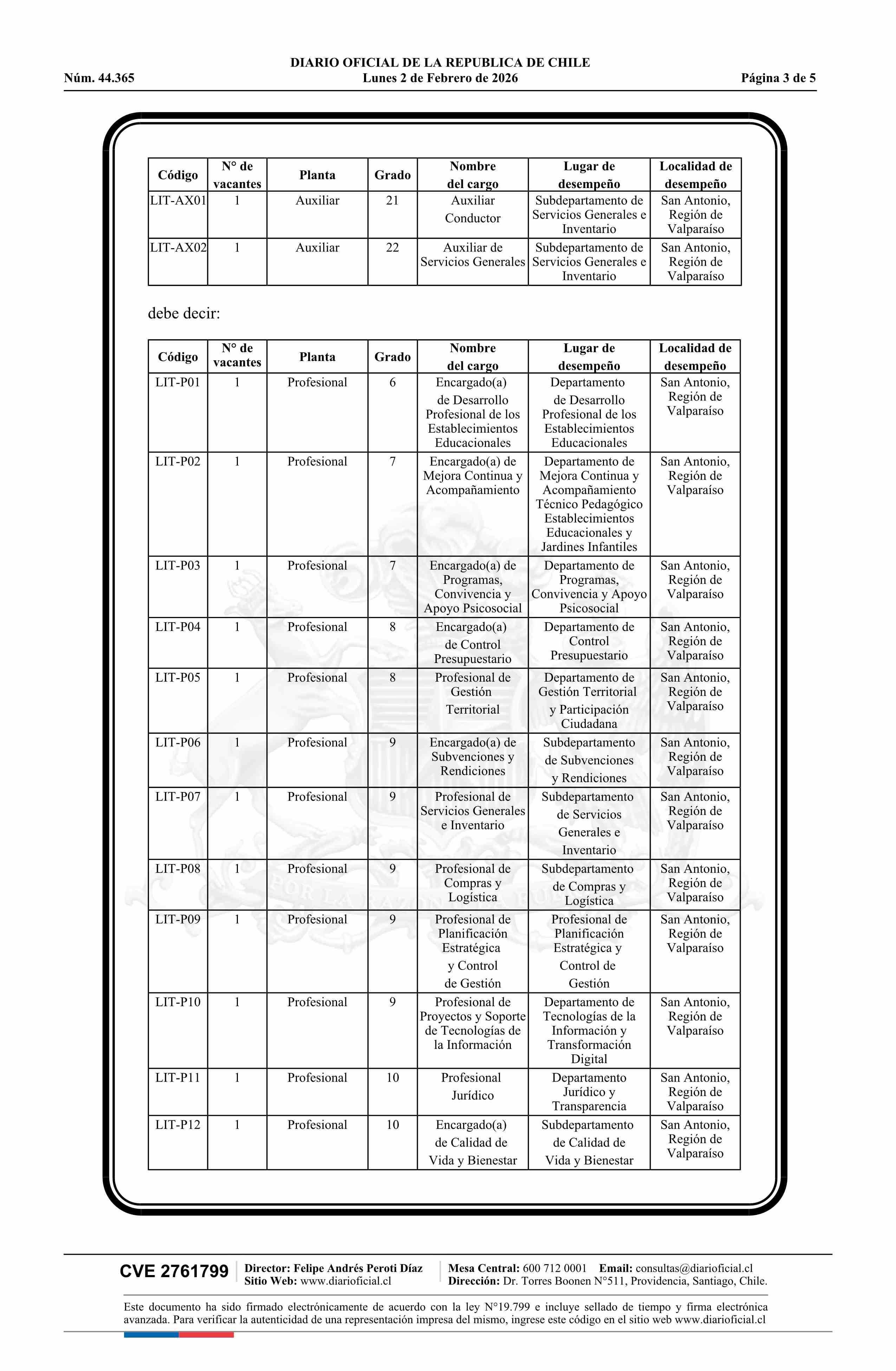| Título: | AVISO LICITACIONES: Rectificación de llamado a concurso público para cargos que indica |