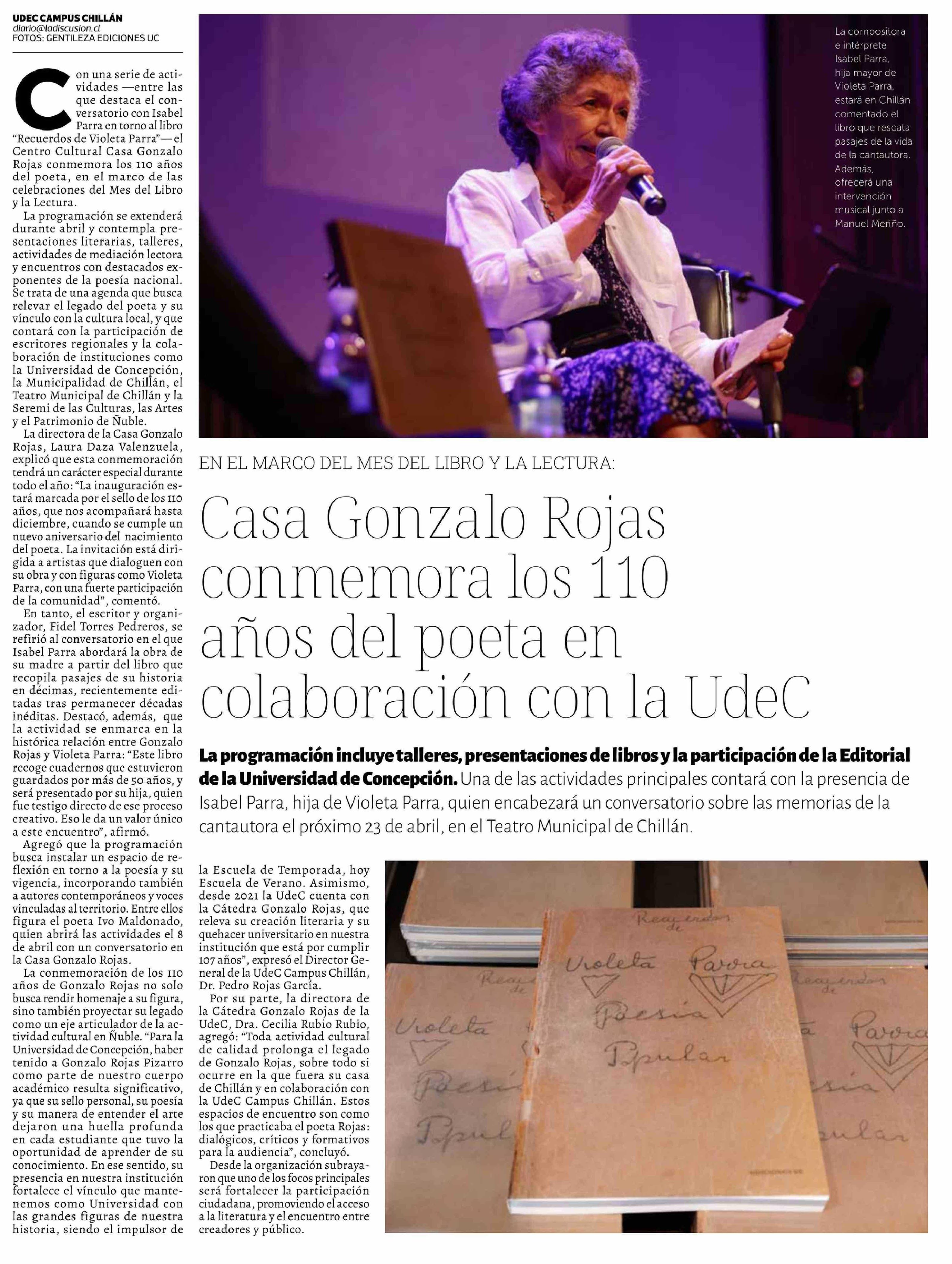 Casa Gonzalo Rojas conmemora los 110 años del poeta en colaboración con la UdeC