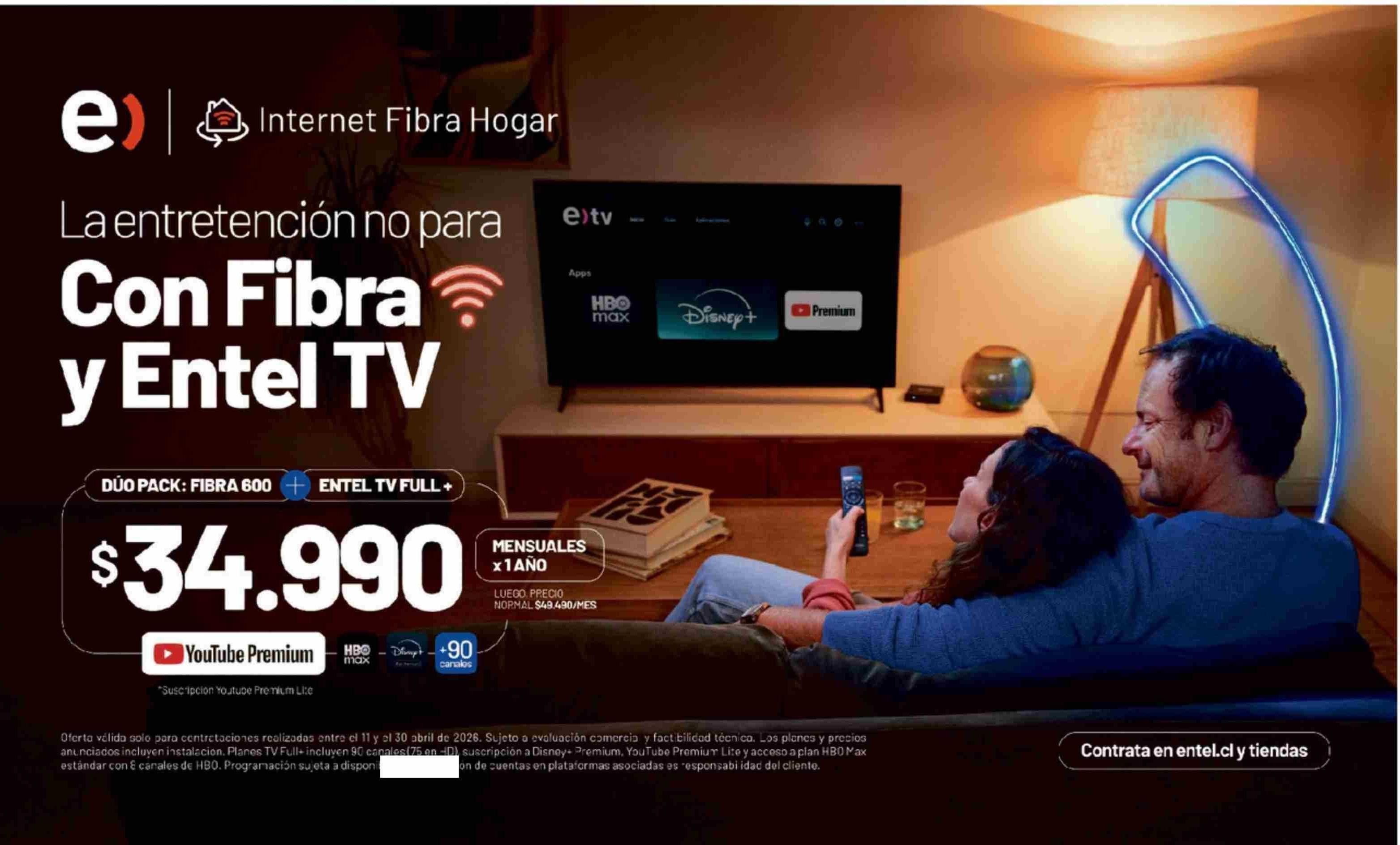 AVISO TELECOMUNICACIONES: Con Fibra y Entel TV