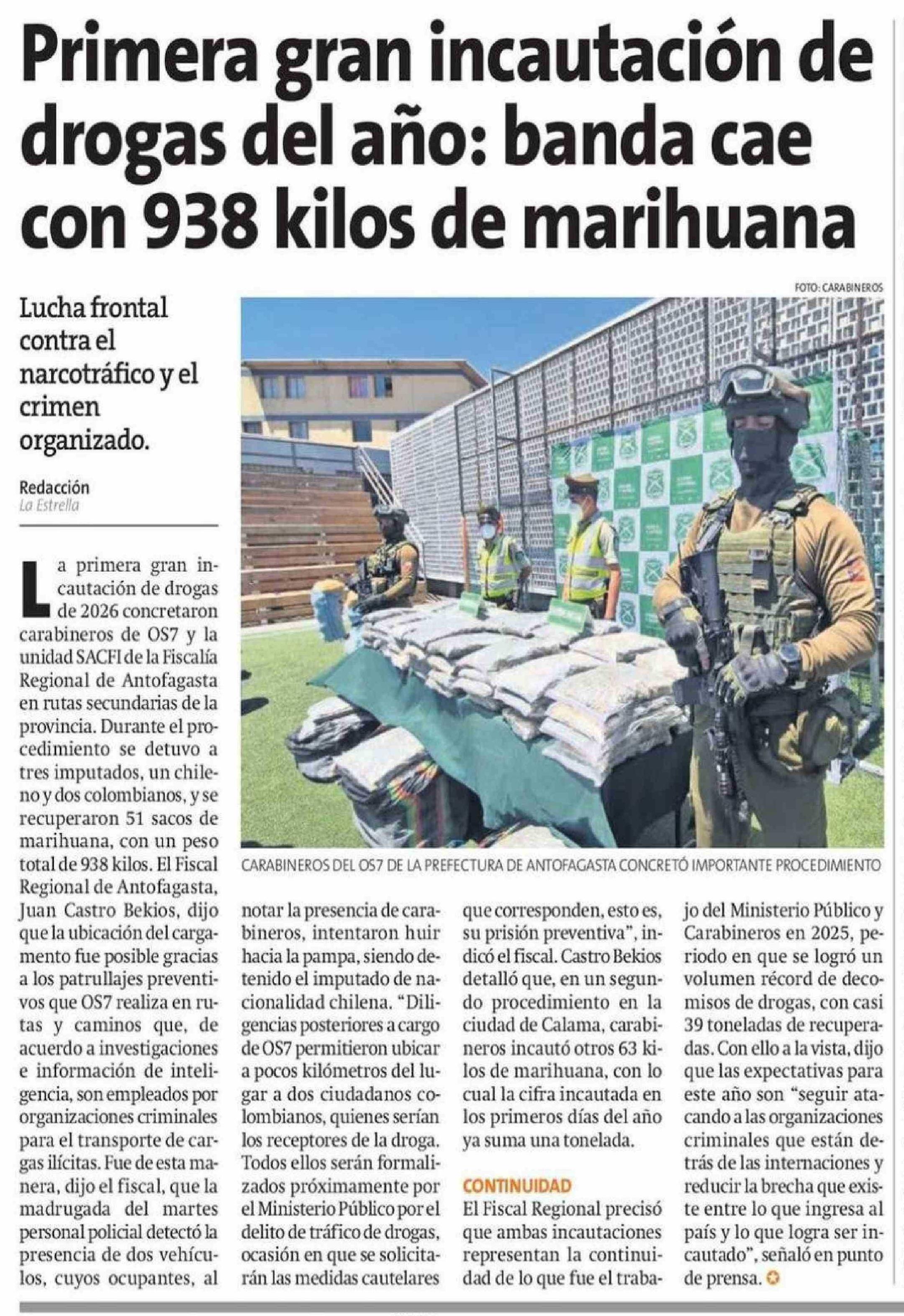 Primera gran incautación de drogas del año: banda cae con 938 kilos de marihuana