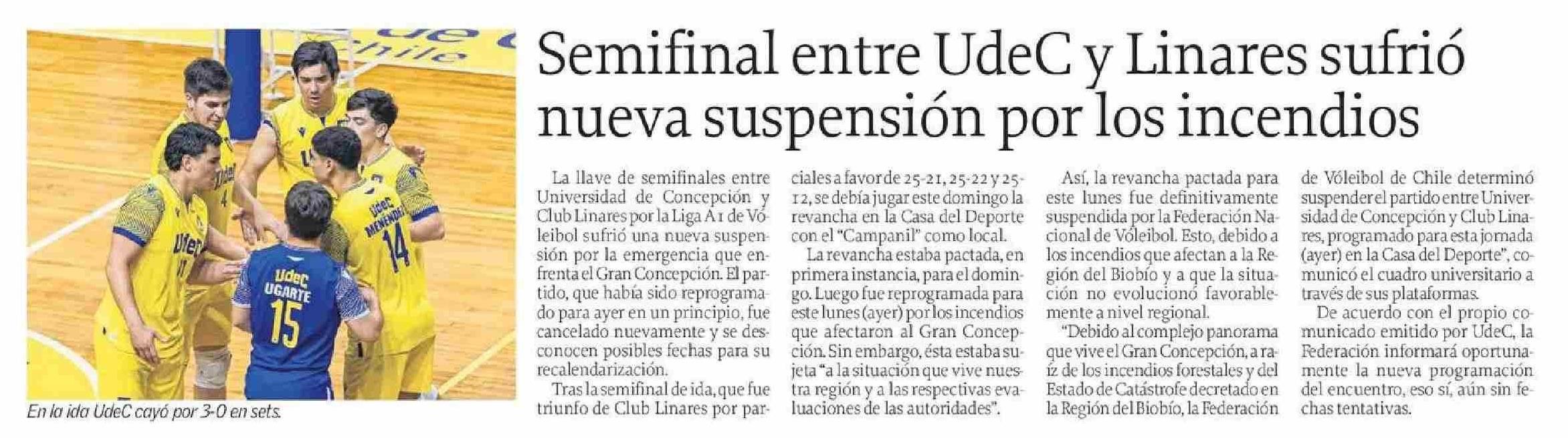 Semifinal entre UdeC y Linares sufrió nueva suspensión por los incendios