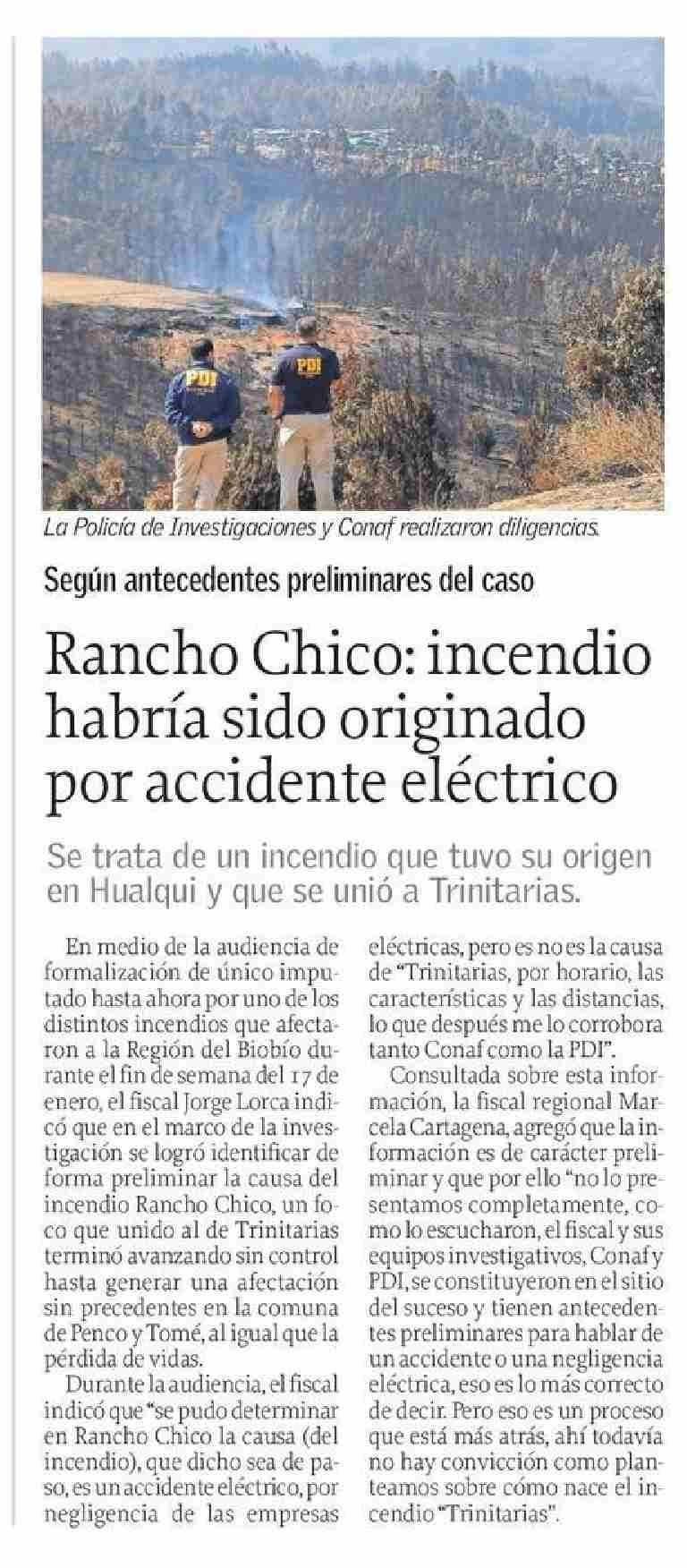 Rancho Chico: incendio habría sido originado por accidente eléctrico