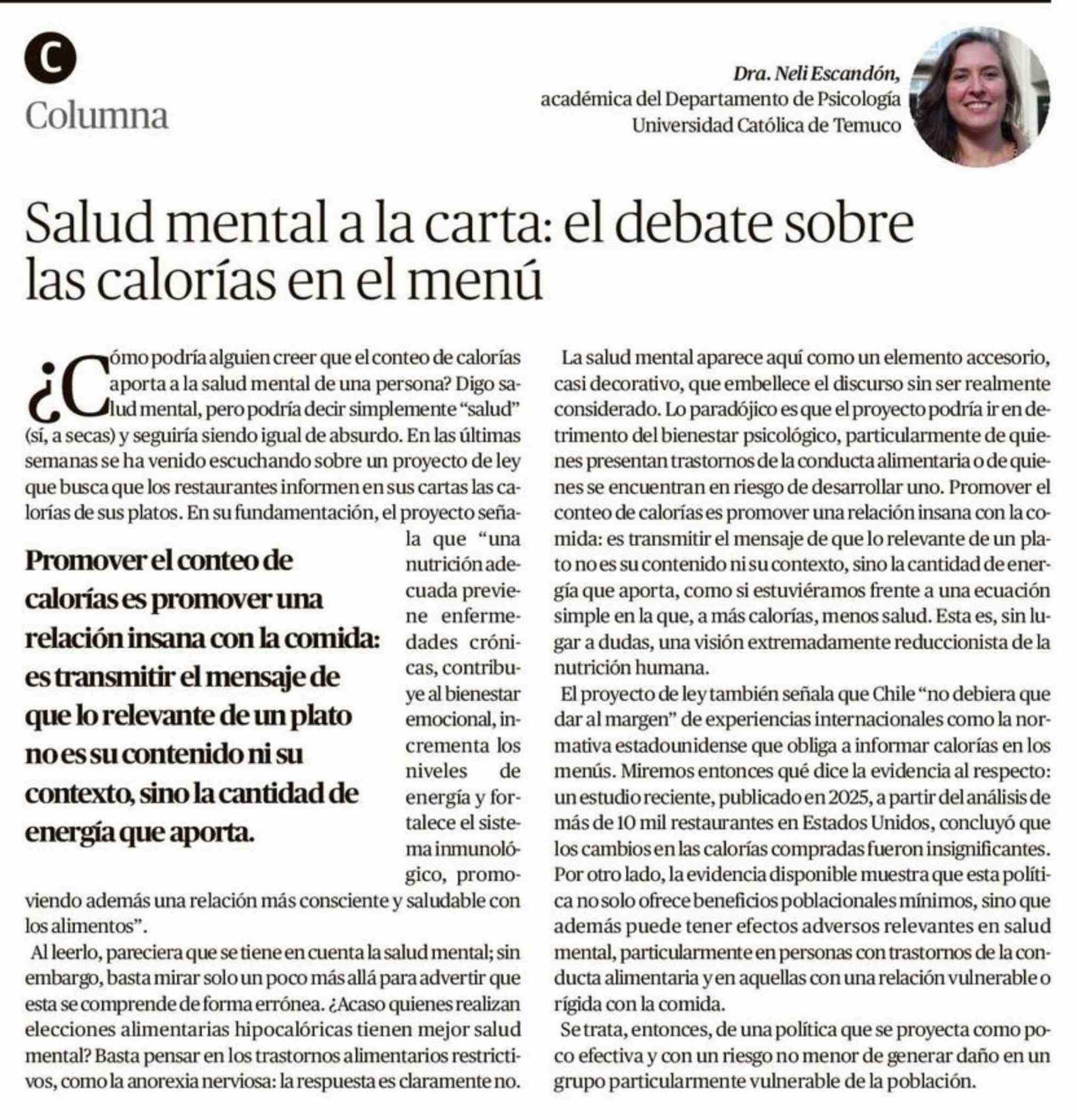 Columnas de Opinión: Salud mental a la carta: el debate sobre las calorías en el menú