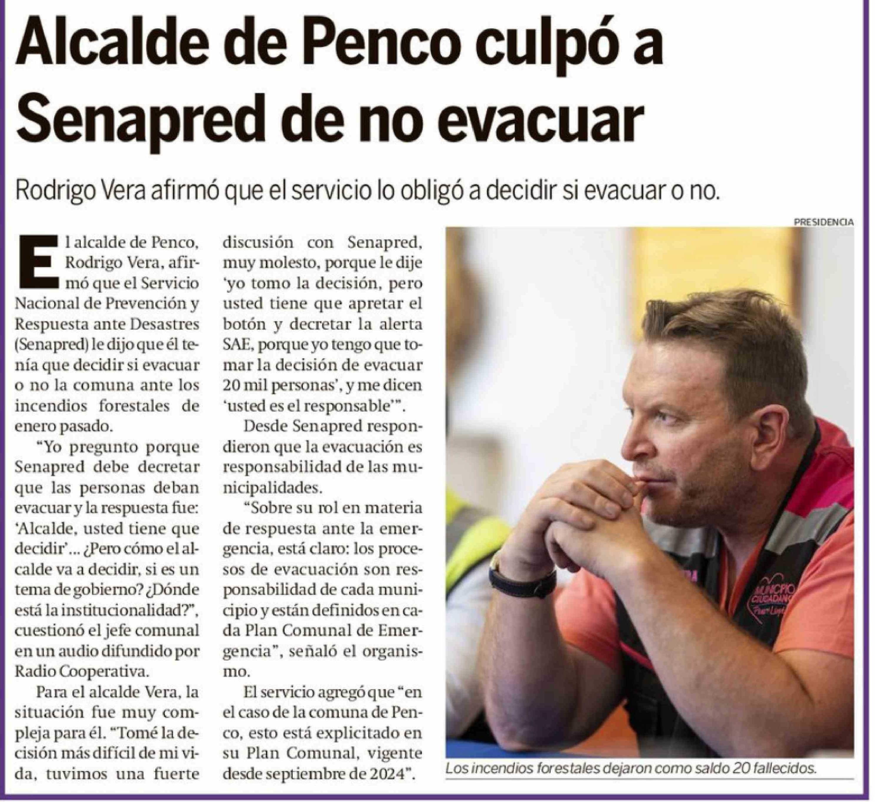 Alcalde de Penco culpó a Senapred de no evacuar