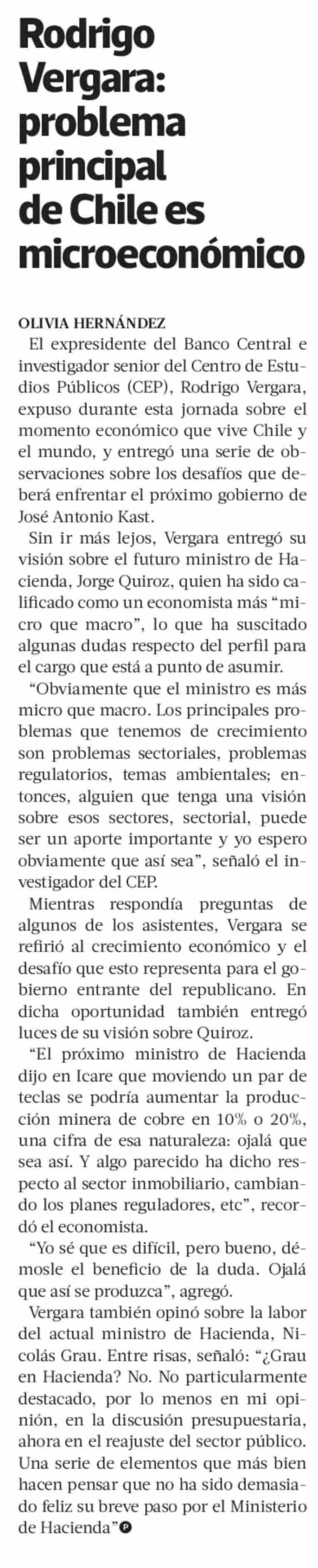 Rodrigo Vergara: problema principal de Chile es microeconómico