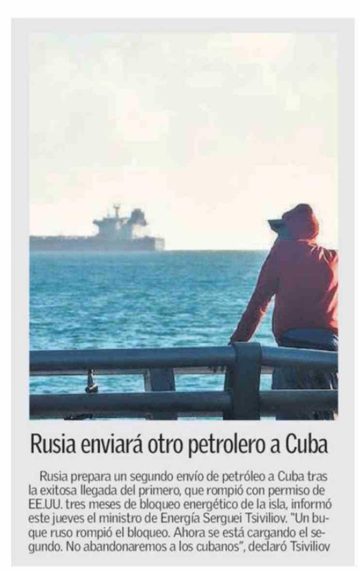 Rusia enviará otro petrolero a Cuba
