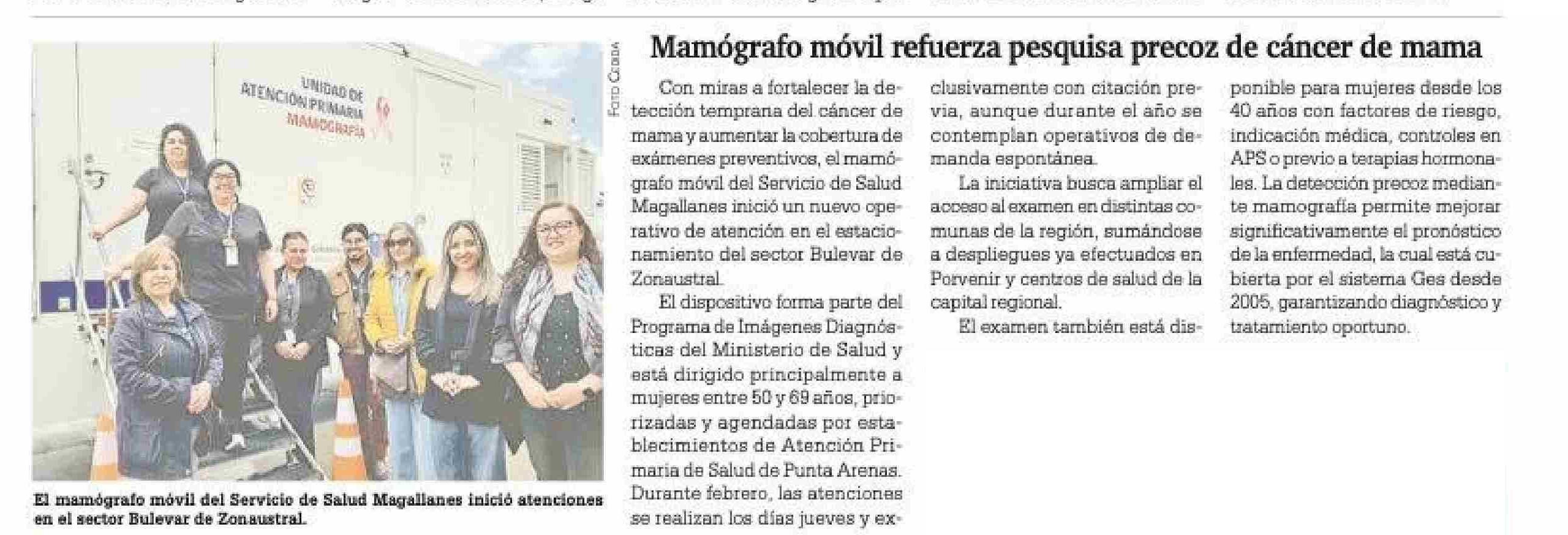 Mamógrafo móvil refuerza pesquisa precoz de cáncer de mama