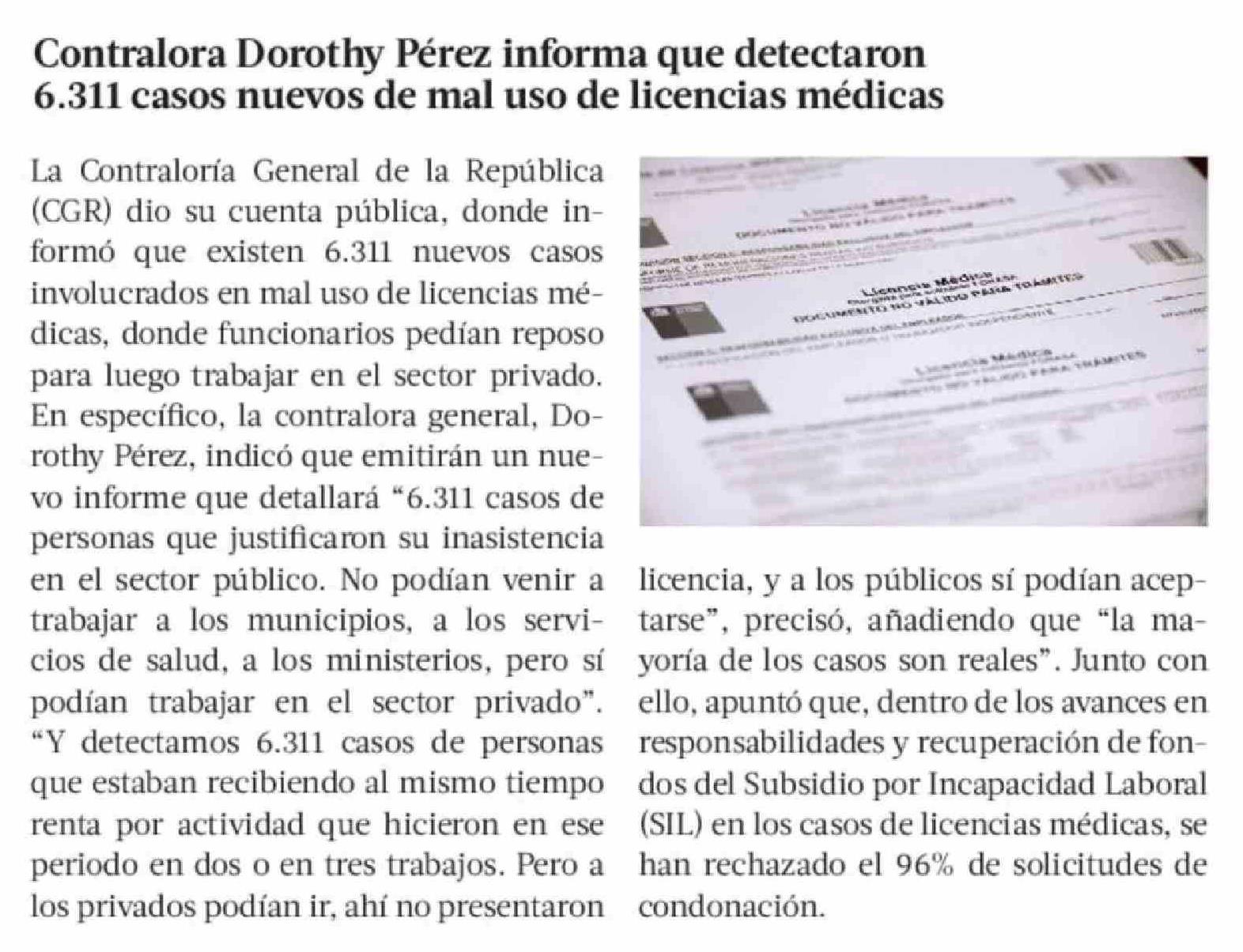 Contralora Dorothy Pérez informa que detectaron 6.311 casos nuevos de mal uso de licencias médicas