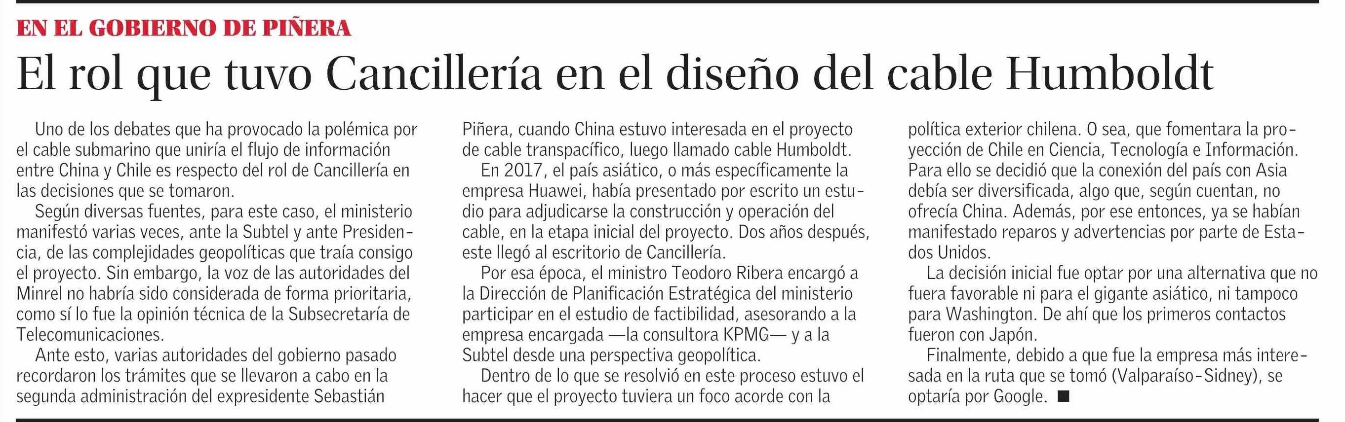 Título: El rol que tuvo Cancillería en el diseño del cable Humboldt