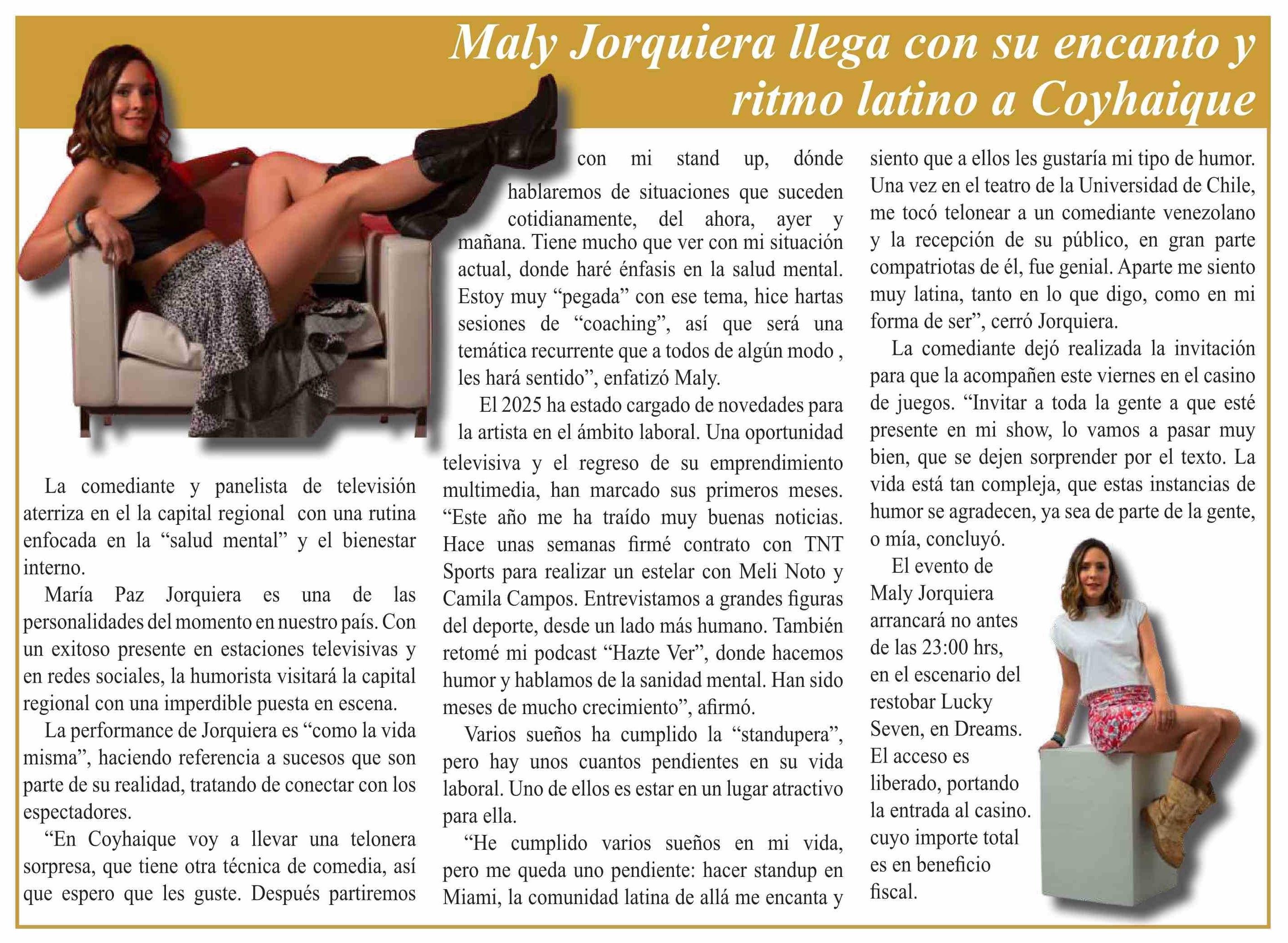 Maly Jorquiera llega con su encanto y ritmo latino a Coyhaique
