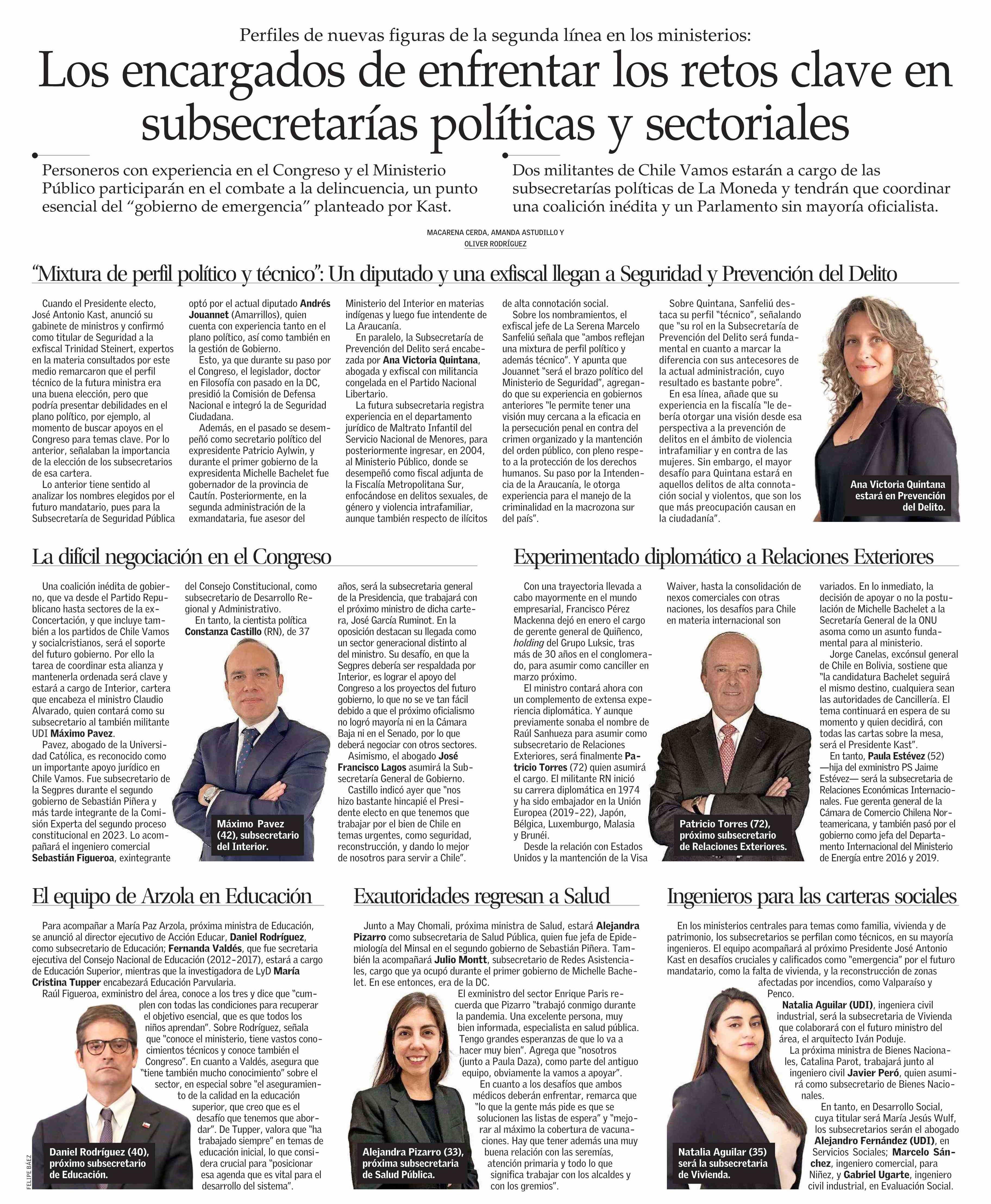 Título: Los encargados de enfrentar los retos clave en subsecretarías políticas y sectoriales