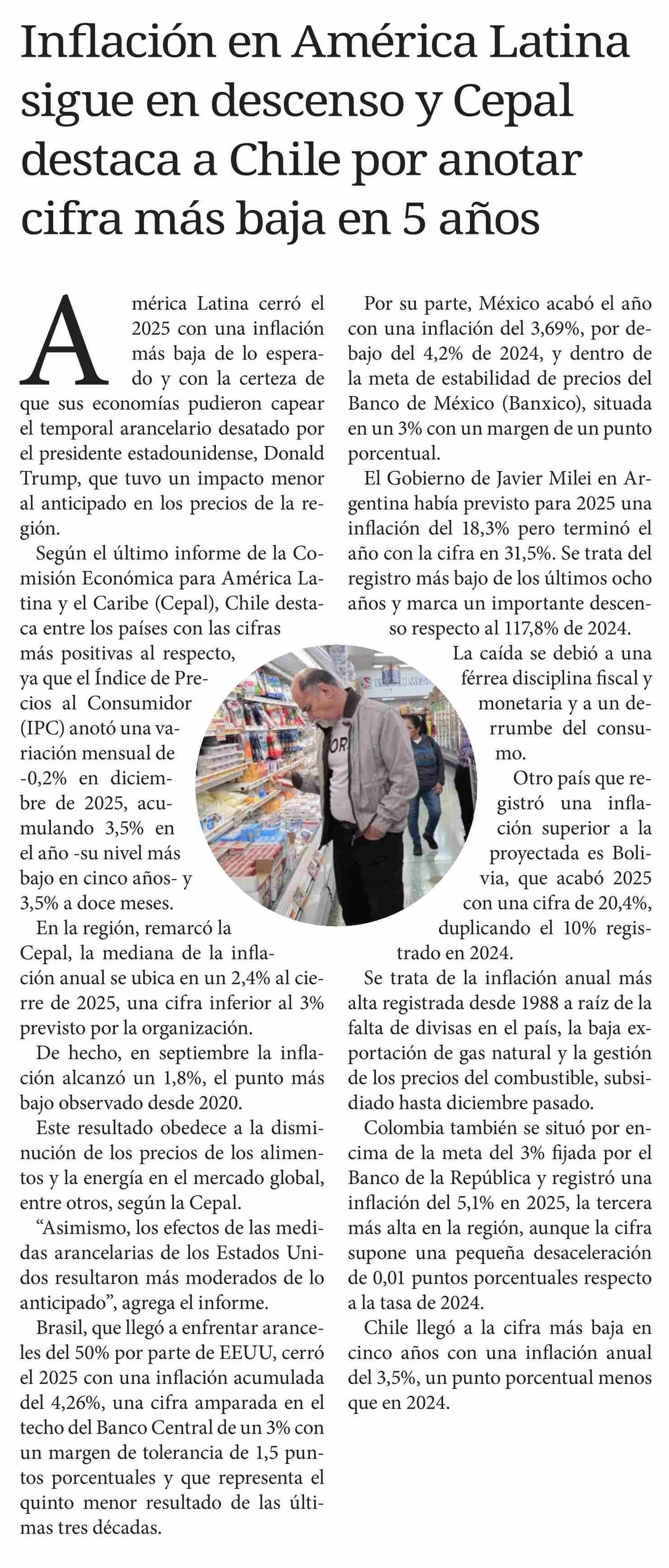 Inflación en América Latina sigue en descenso y Cepal destaca a Chile por anotar cifra más baja en 5 años