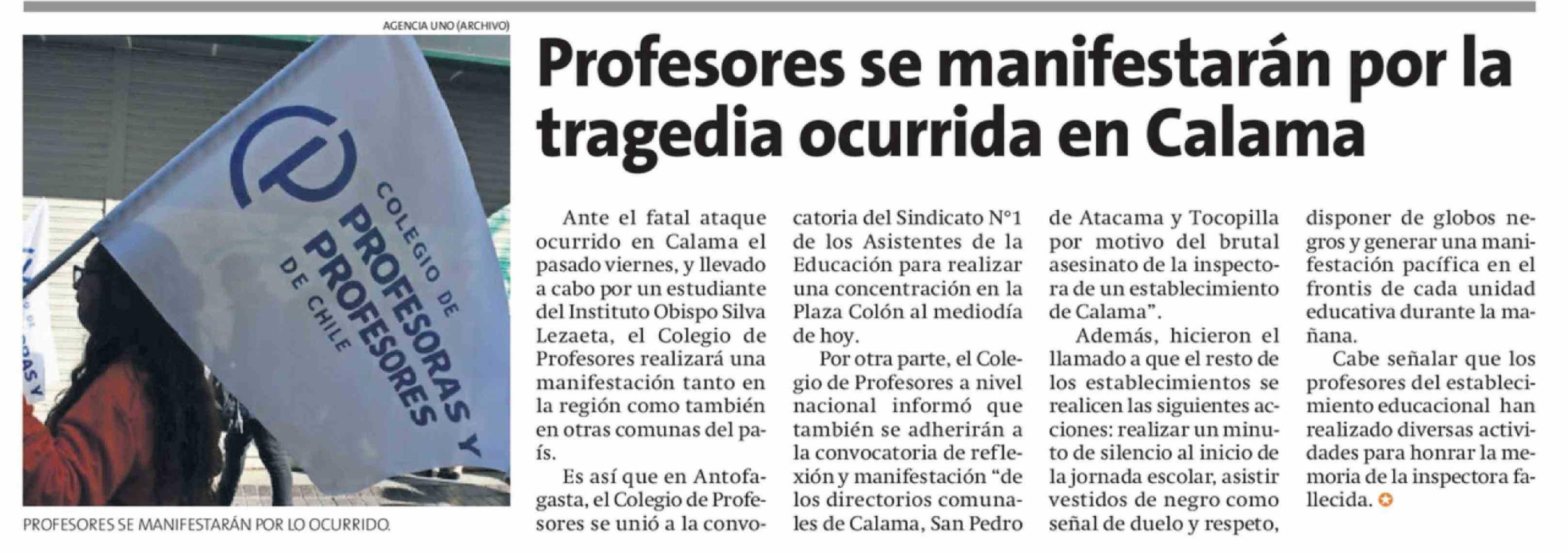 Profesores se manifestarán por la tragedia ocurrida en Calama