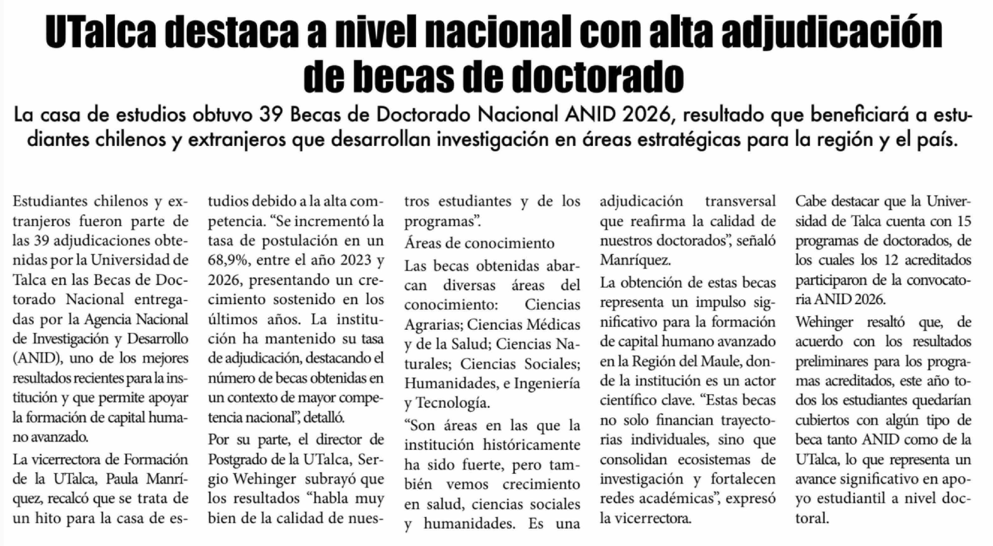 UTalca destaca a nivel nacional con alta adjudicación de becas de doctorado
