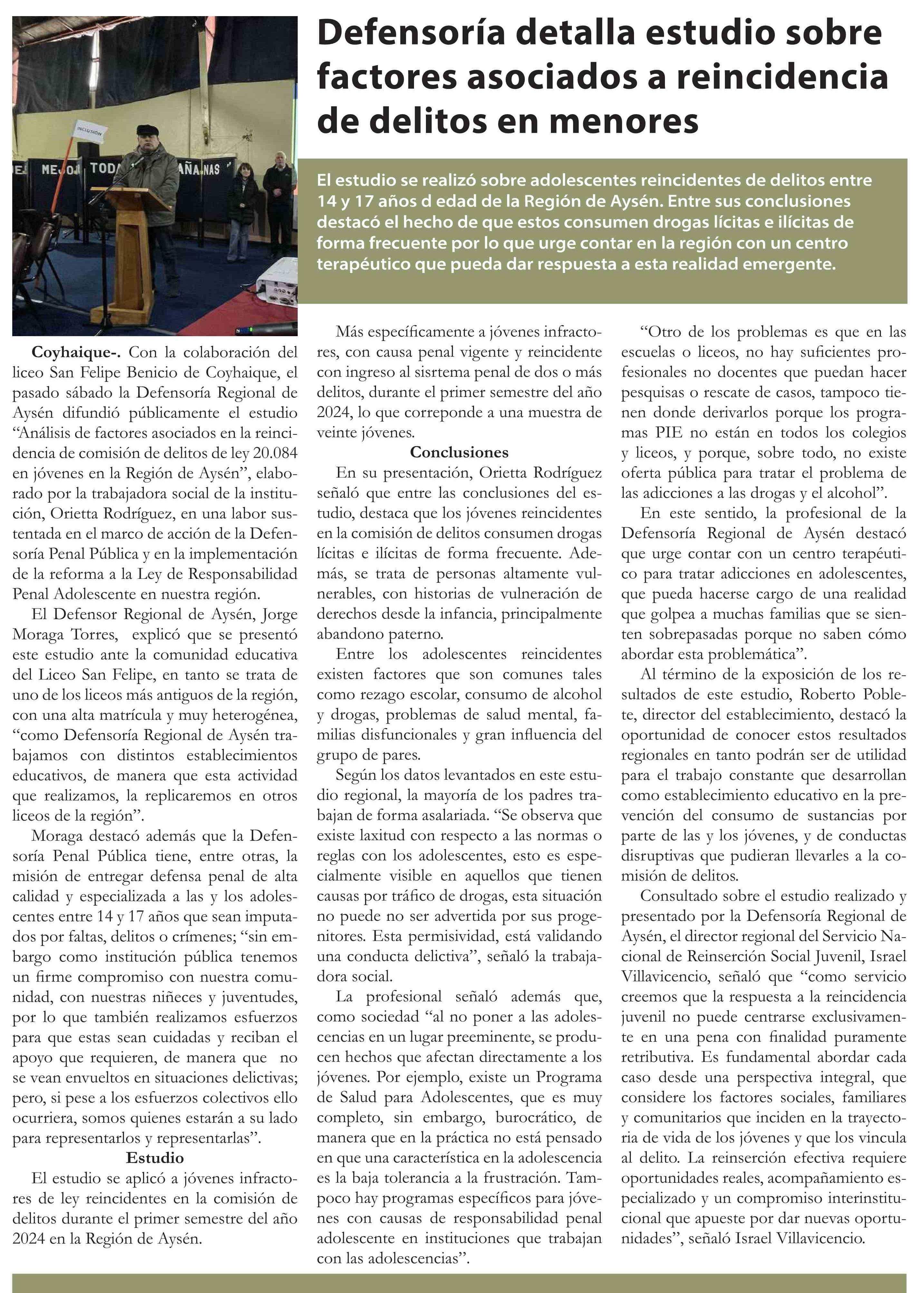 Defensoría detalla estudio sobre factores asociados a reincidencia de delitos en menores