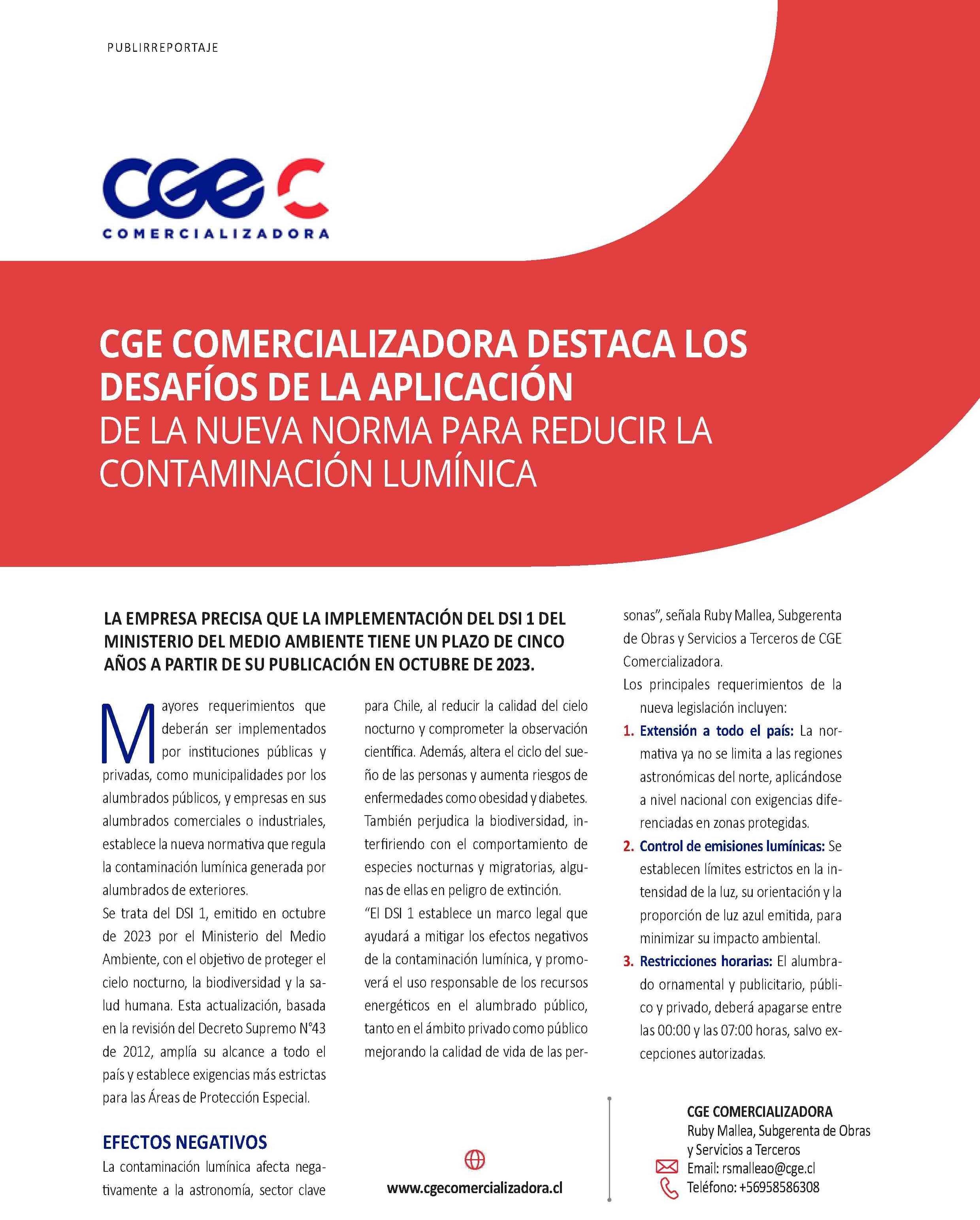 CGE COMERCIALIZADORA DESTACA LOS DESAFÍOS DE LA APLICACIÓN DE LA NUEVA NORMA PARA REDUCIR LA CONTAMINACIÓN LUMÍNICA