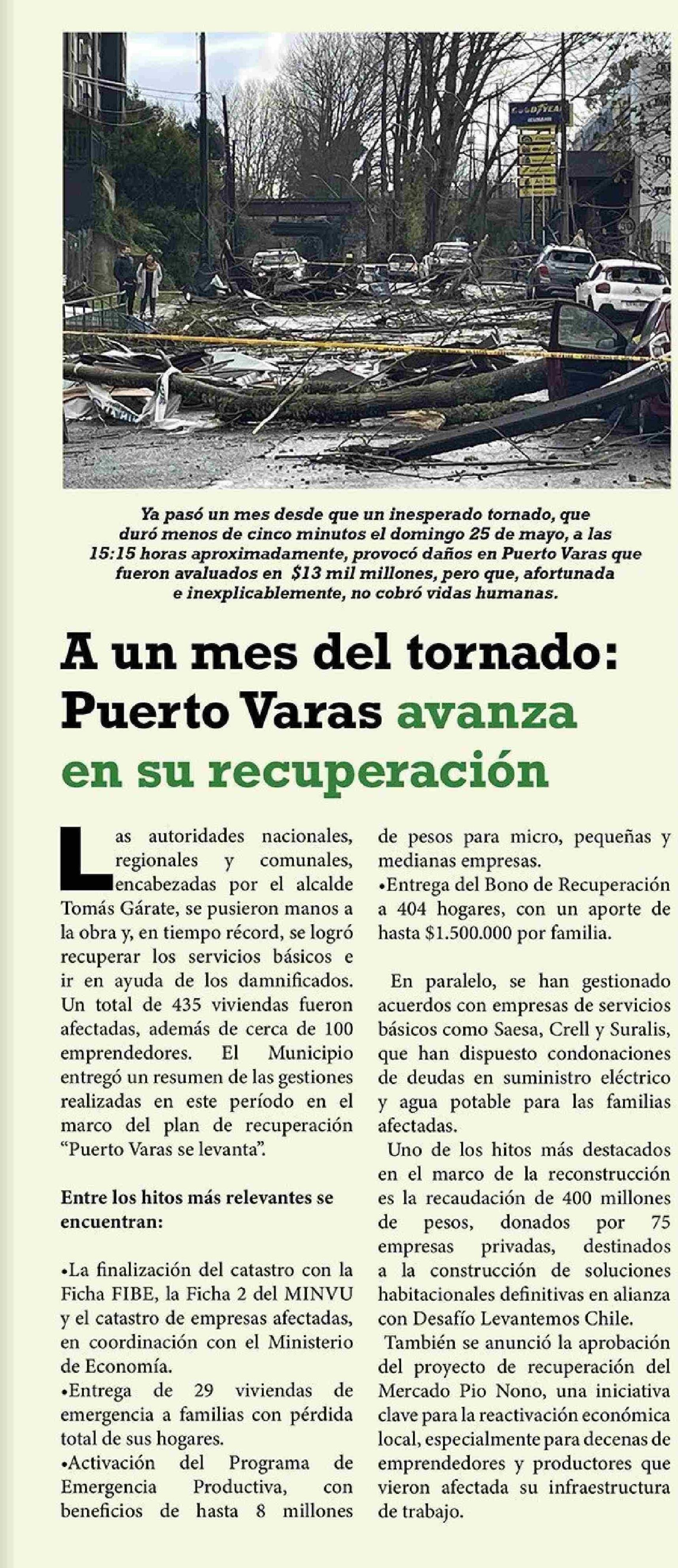 A un mes del tornado: Puerto Varas avanza en su recuperación