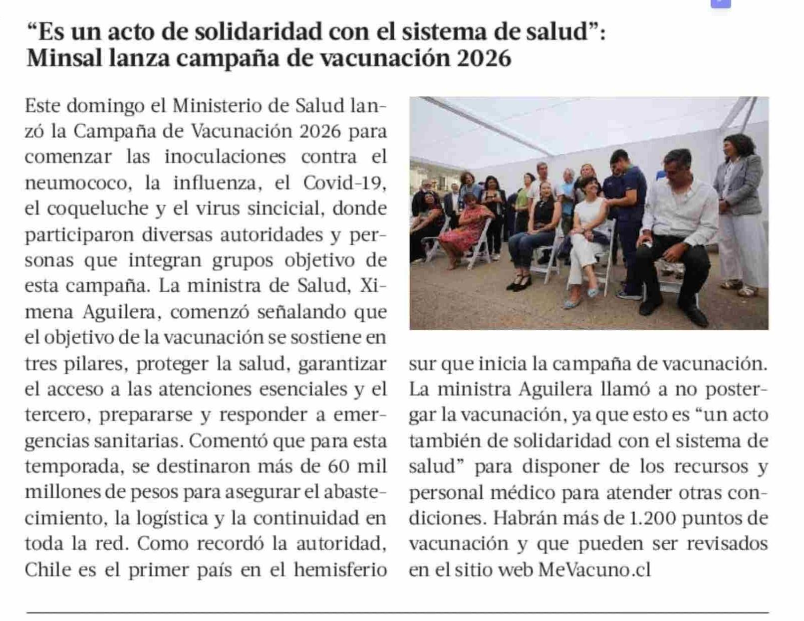 “Es un acto de solidaridad con el sistema de salud”: Minsal lanza campaña de vacunación 2026