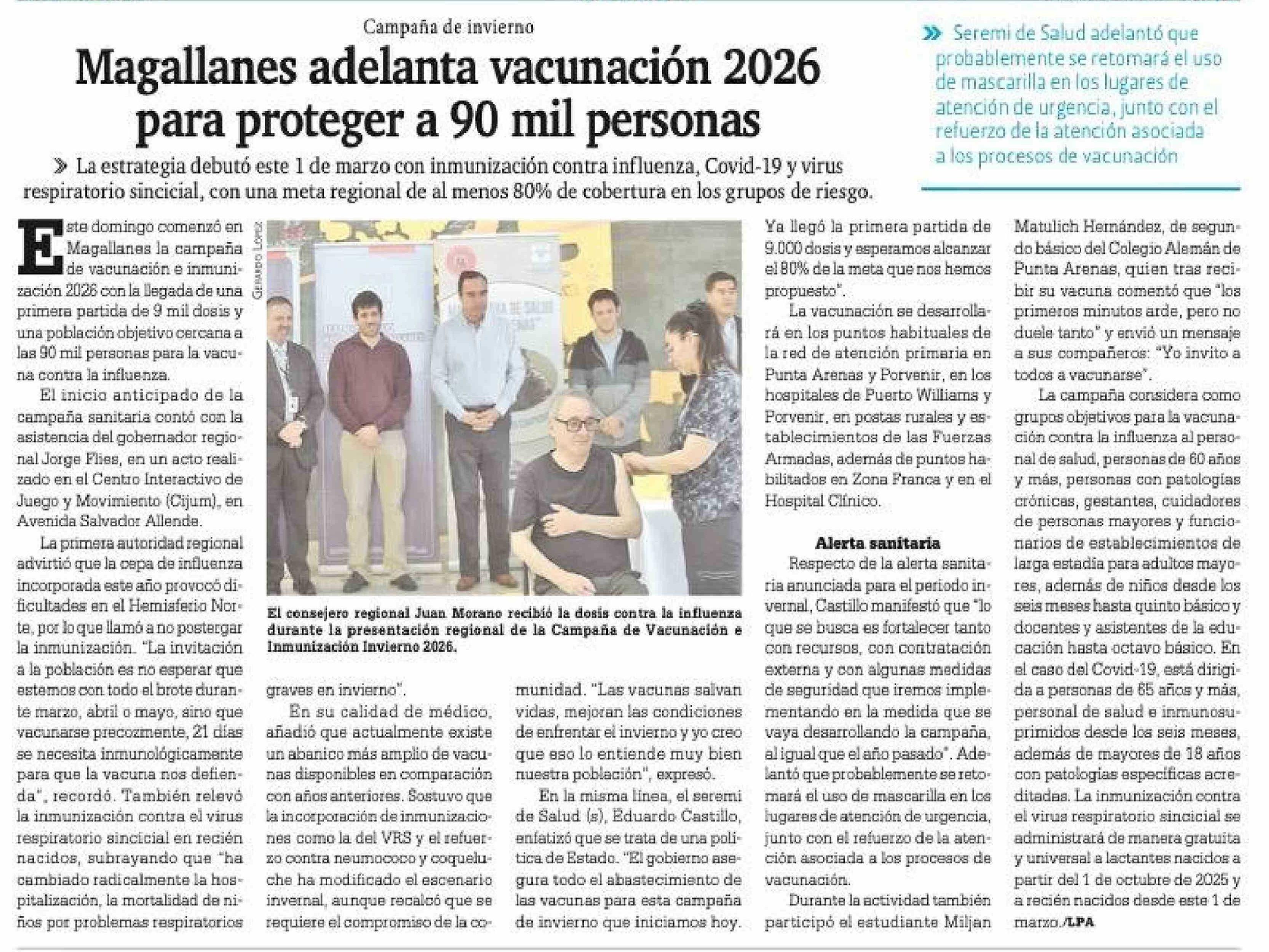 Título: Magallanes adelanta vacunación 2026 para proteger a 90 mil personas