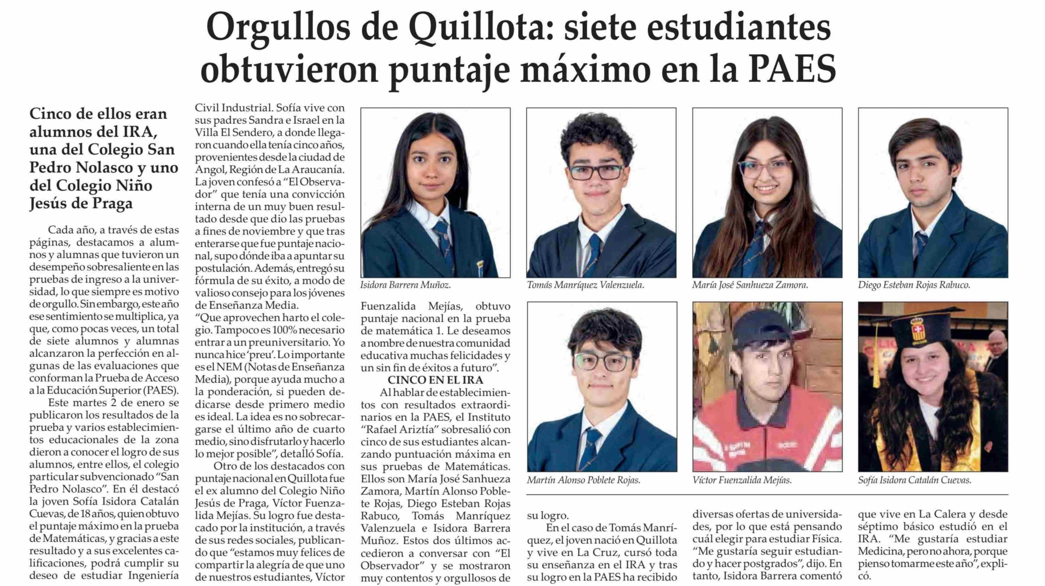 Orgullos de Quillota: siete estudiantes obtuvieron puntaje máximo en la PAES