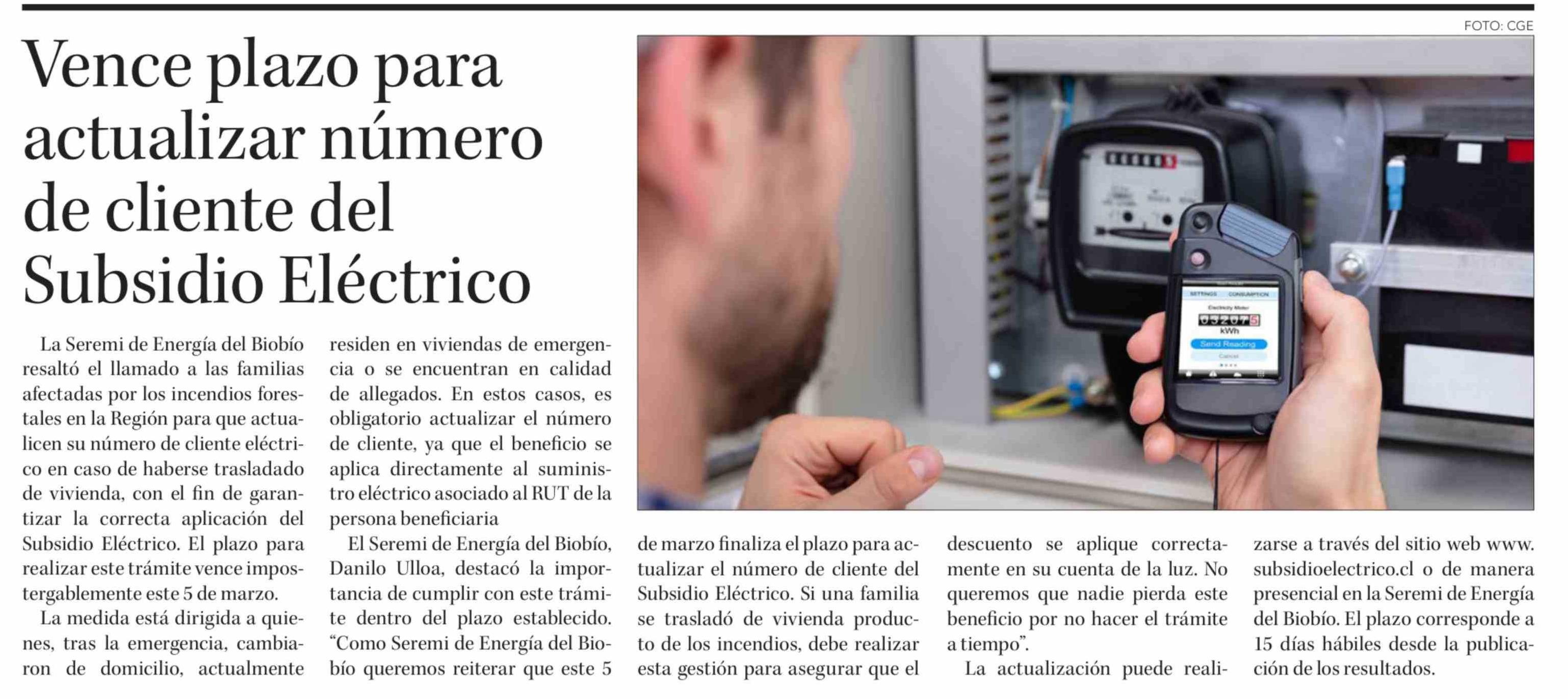 Vence plazo para actualizar número de cliente del Subsidio Eléctrico