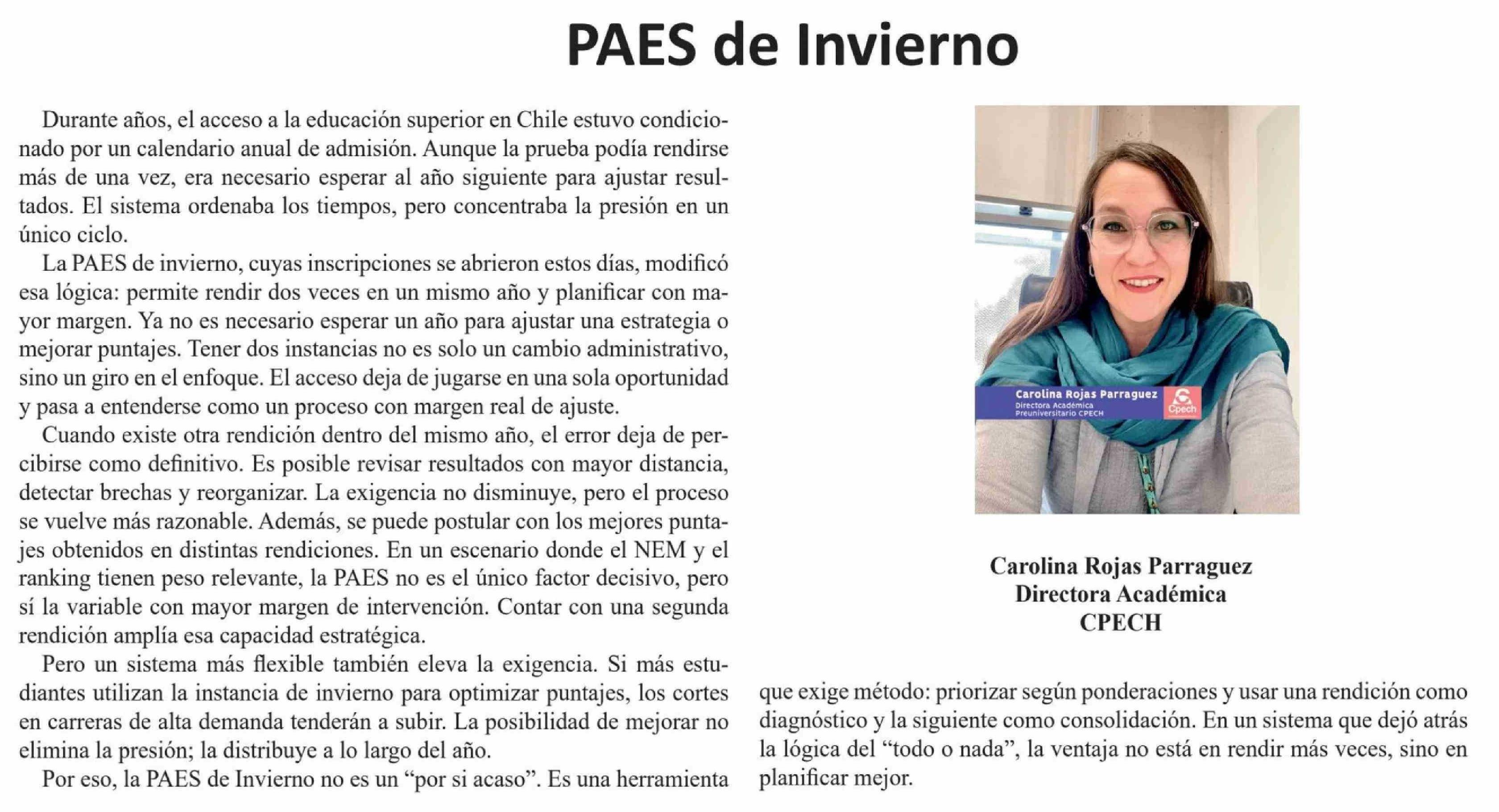 Columnas de Opinión: PAES de Invierno
