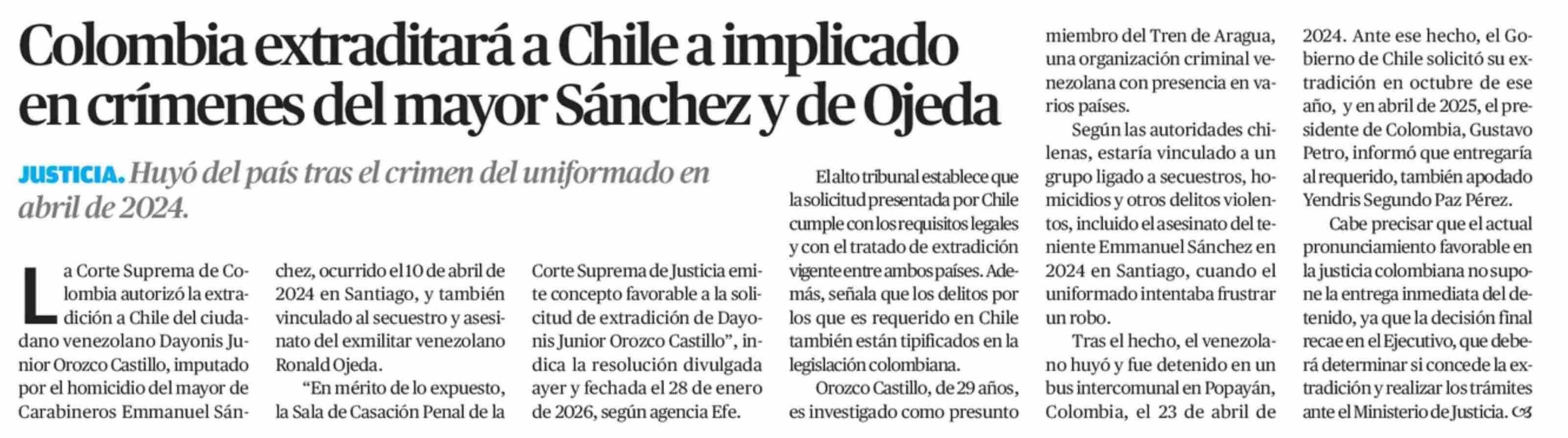 Colombia extraditará a Chile a implicado en crímenes del mayor Sánchez y de Ojeda