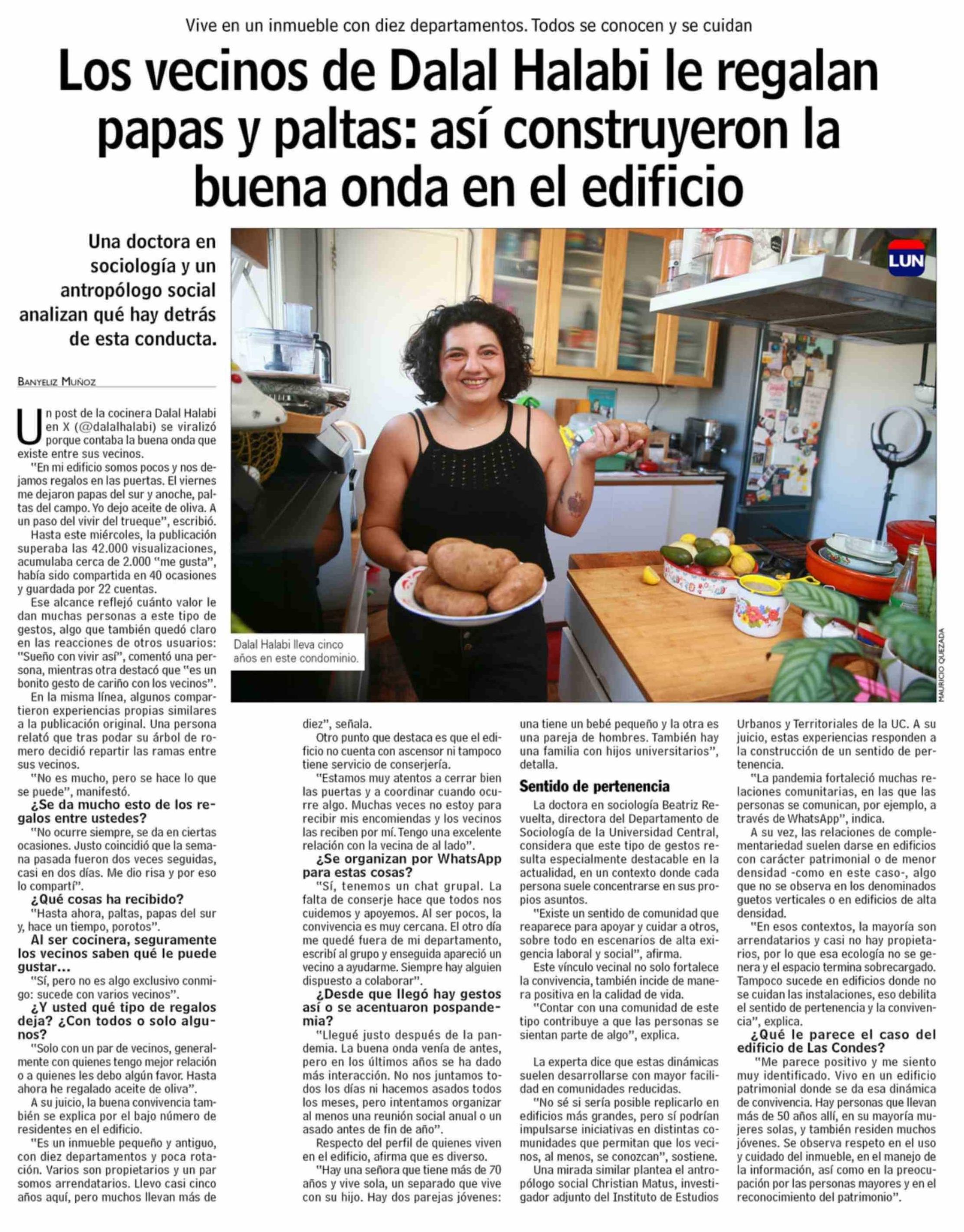 Título: Los vecinos de Dalal Halabi le regalan papas y paltas: así construyeron la buena onda en el edificio