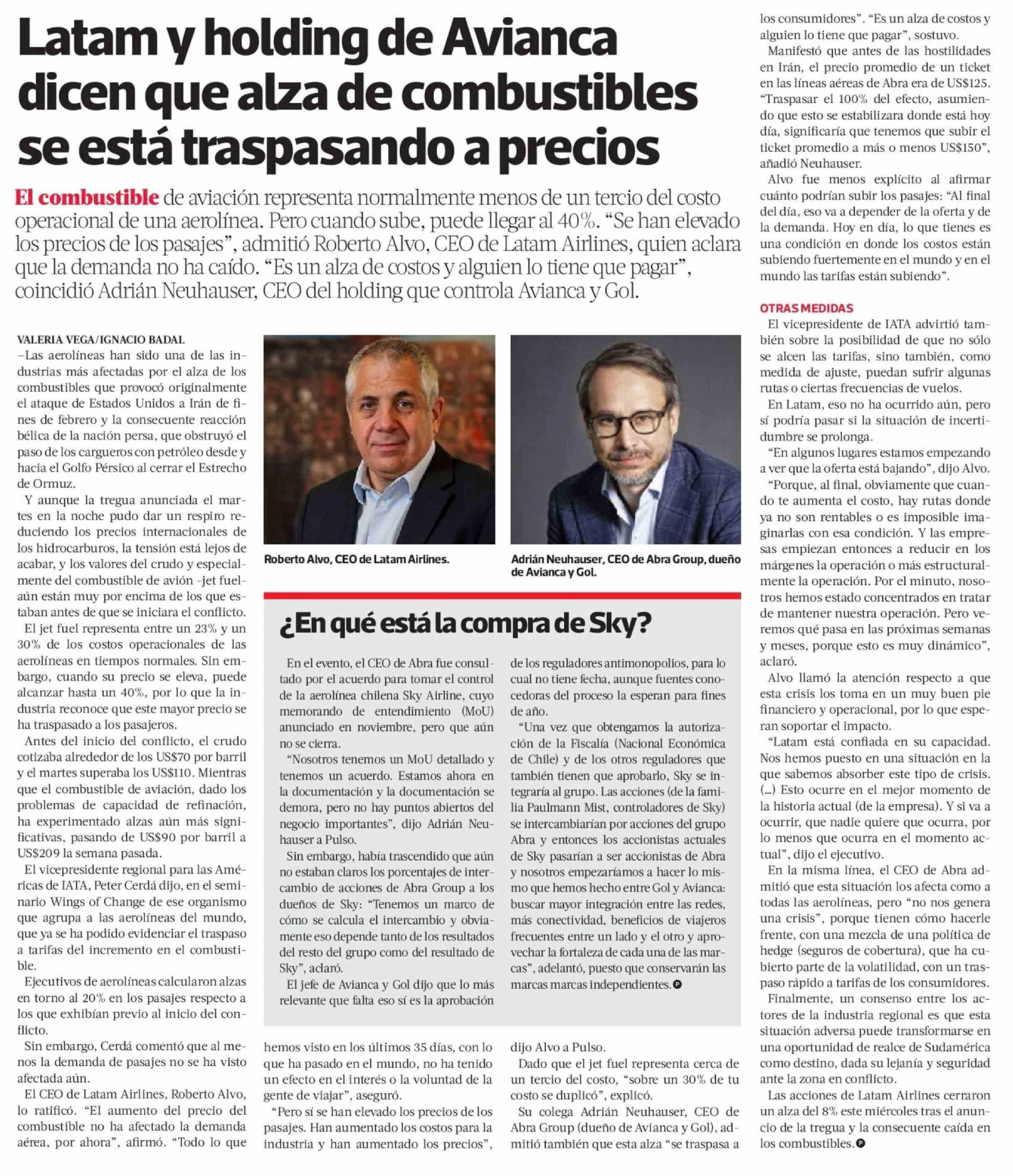Latam y holding de Avianca dicen que alza de combustibles se está traspasando a precios