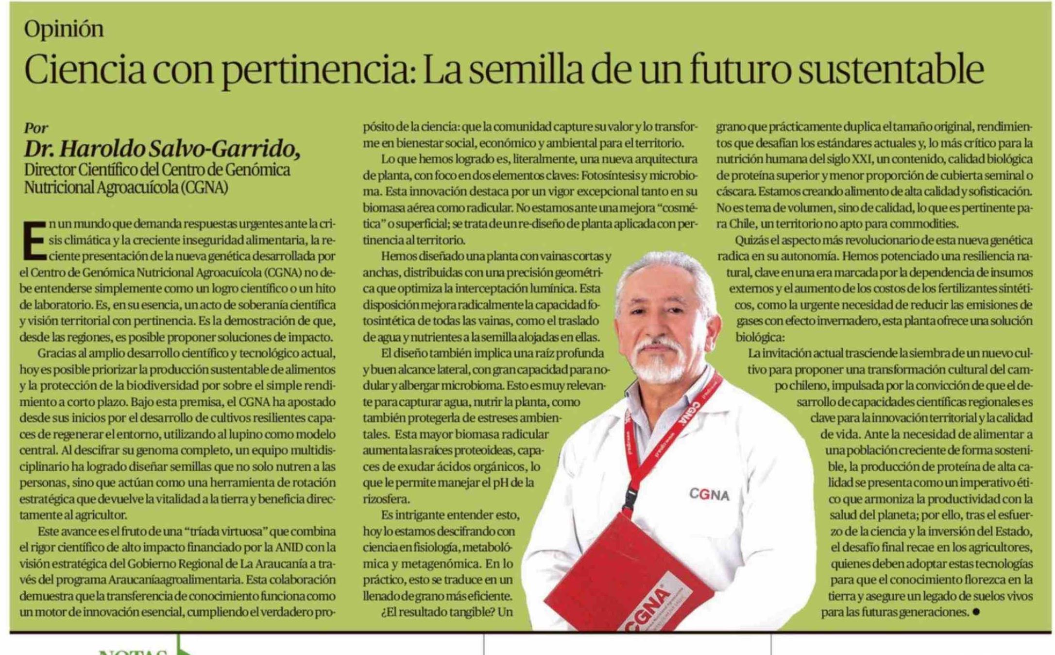 Columnas de Opinión: Ciencia con pertinencia: La semilla de un futuro sustentable