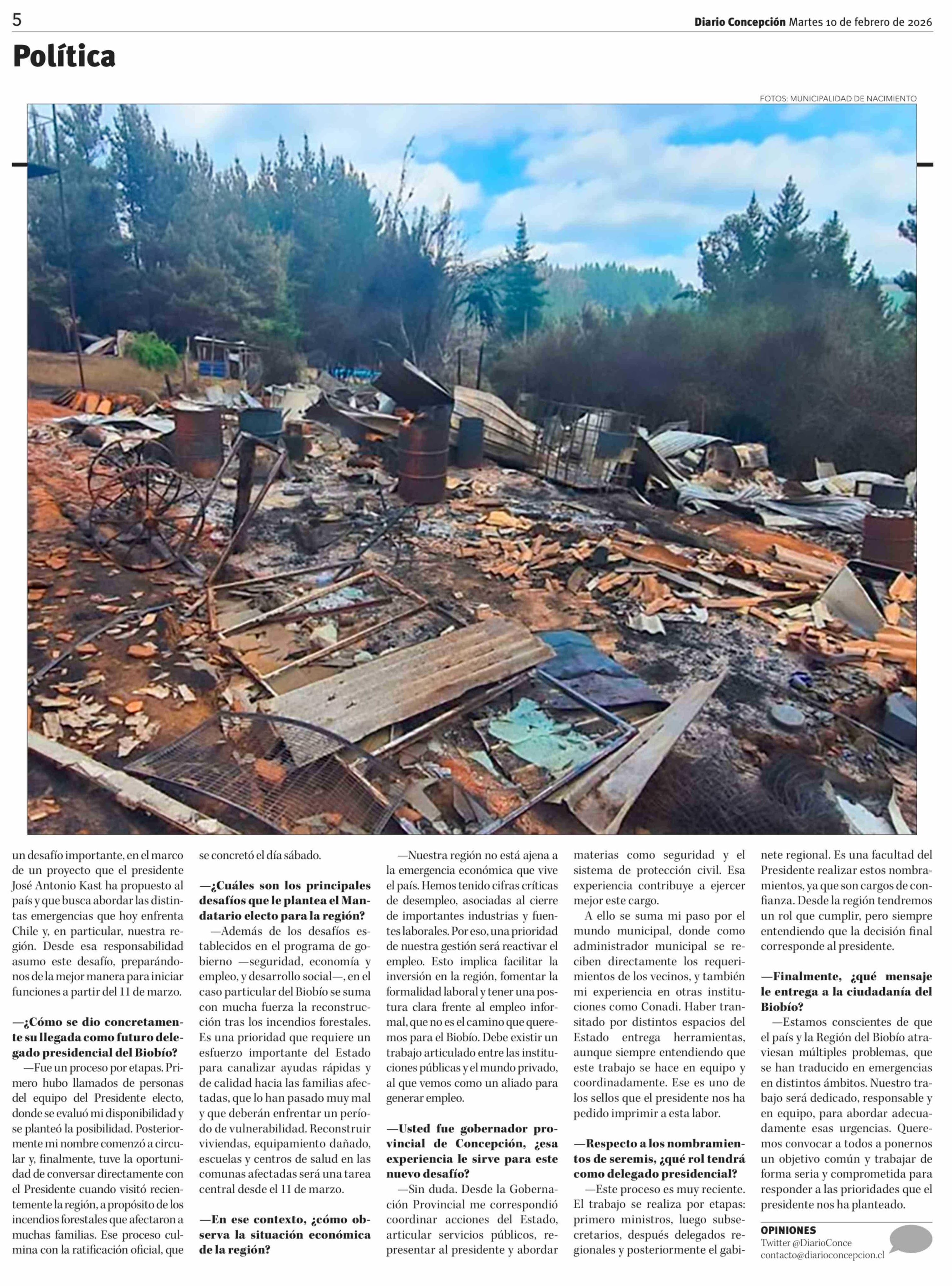"La reconstrucción tras los incendios será una prioridad": Julio Anativia, próximo delegado presidencial