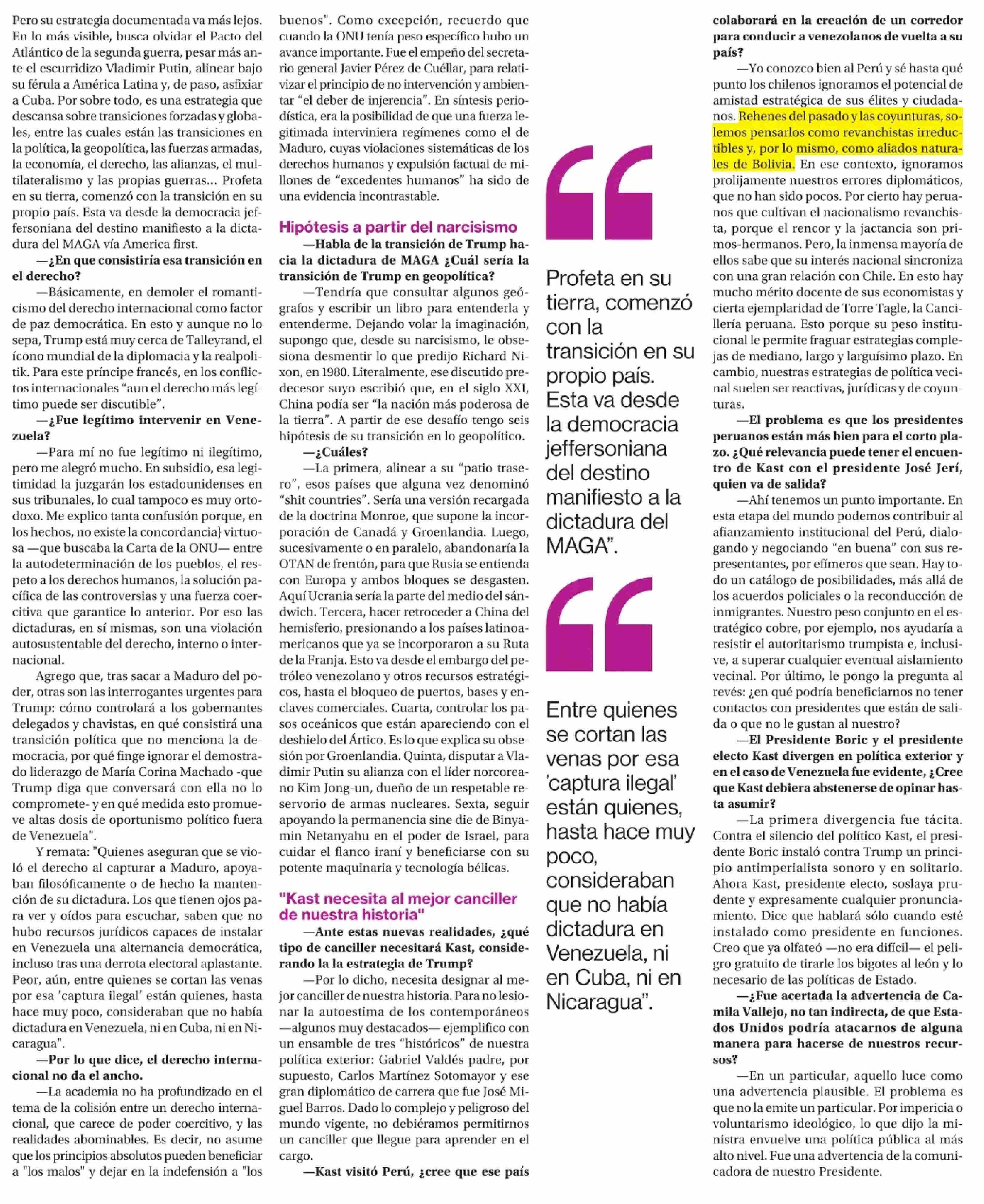 José Rodríguez Elizondo: "Nuestro peso conjunto con Perú nos ayudaría a resistir el autoritarismo trumpista"