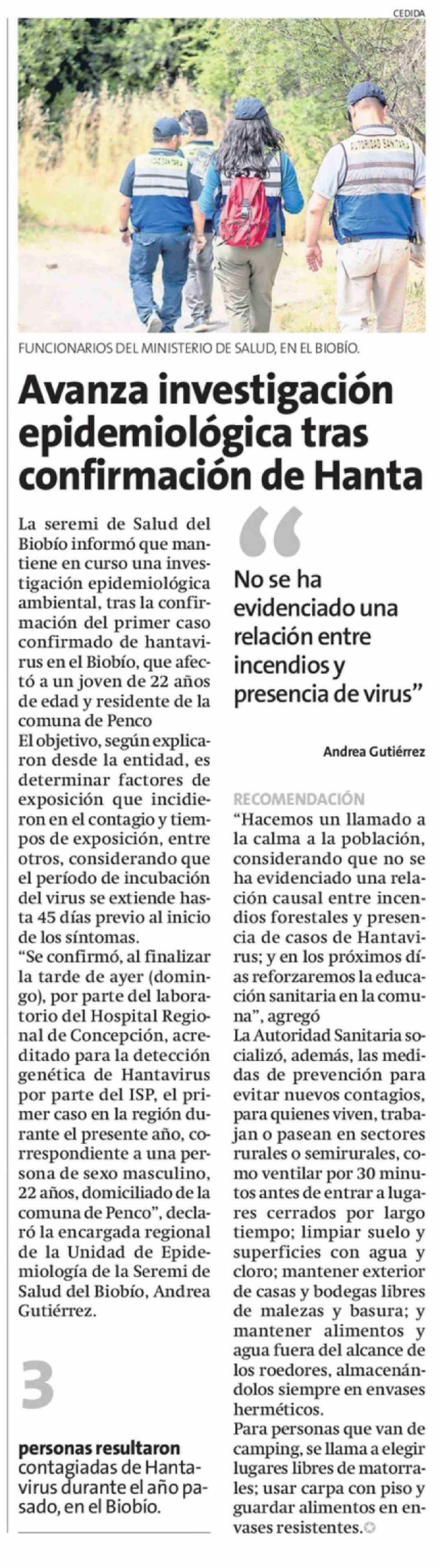 Avanza investigación epidemiológica tras confirmación de Hanta