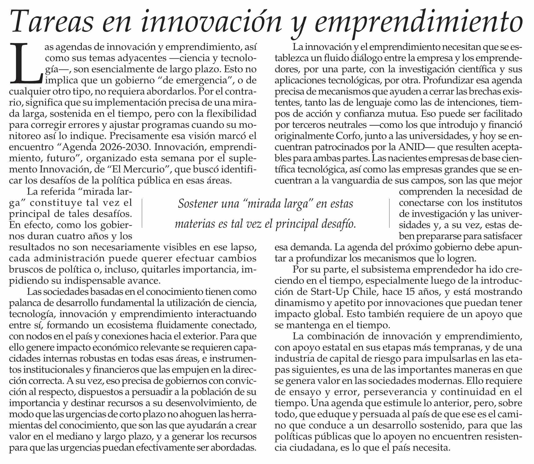 Editorial: Tareas en innovación y emprendimiento