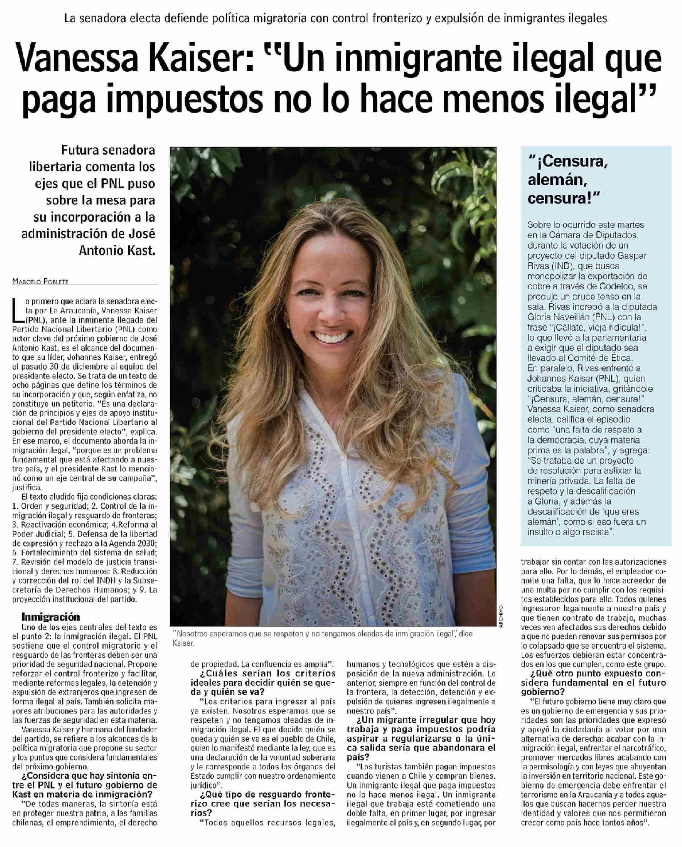 Vanessa Kaiser: "Un inmigrante ilegal que paga impuestos no lo hace menos ilegal"