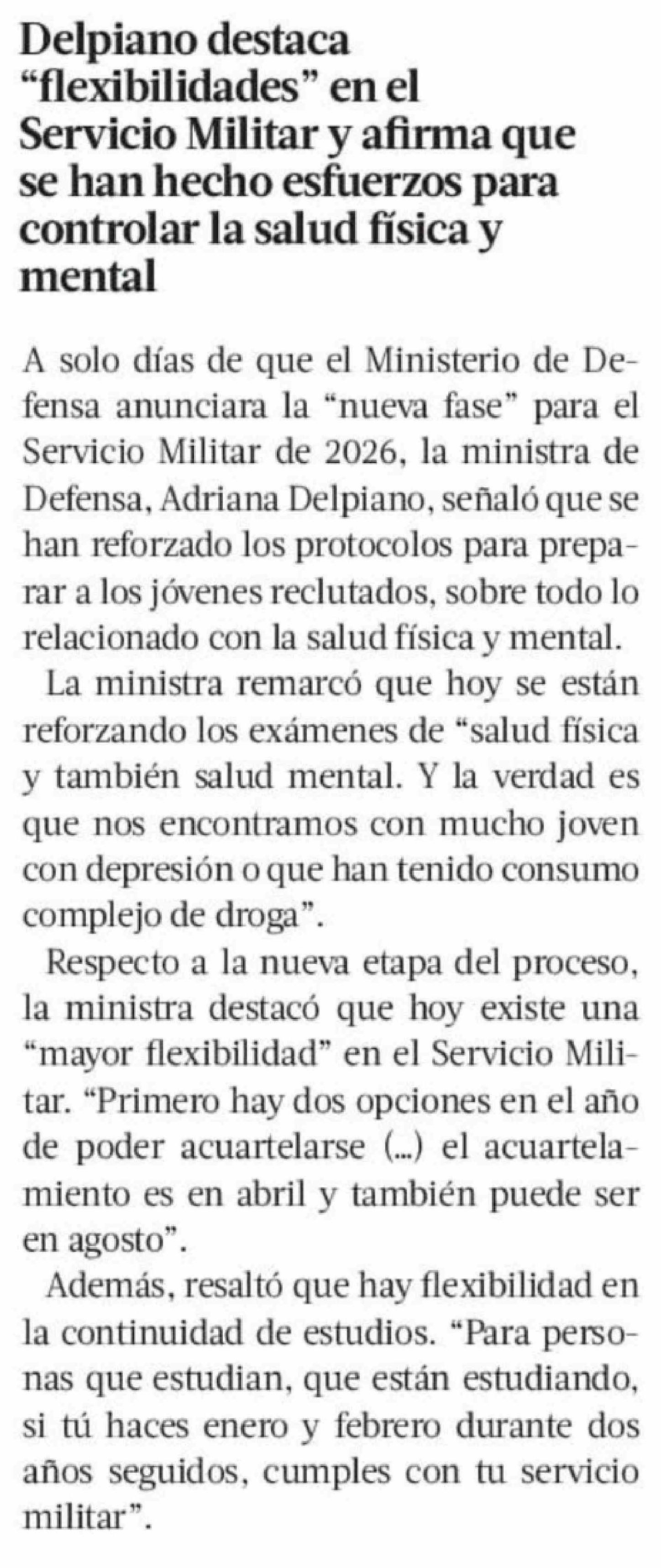 Delpiano destaca "flexibilidades" en el Servicio Militar y afirma que se han hecho esfuerzos para controlar la salud física y mental
