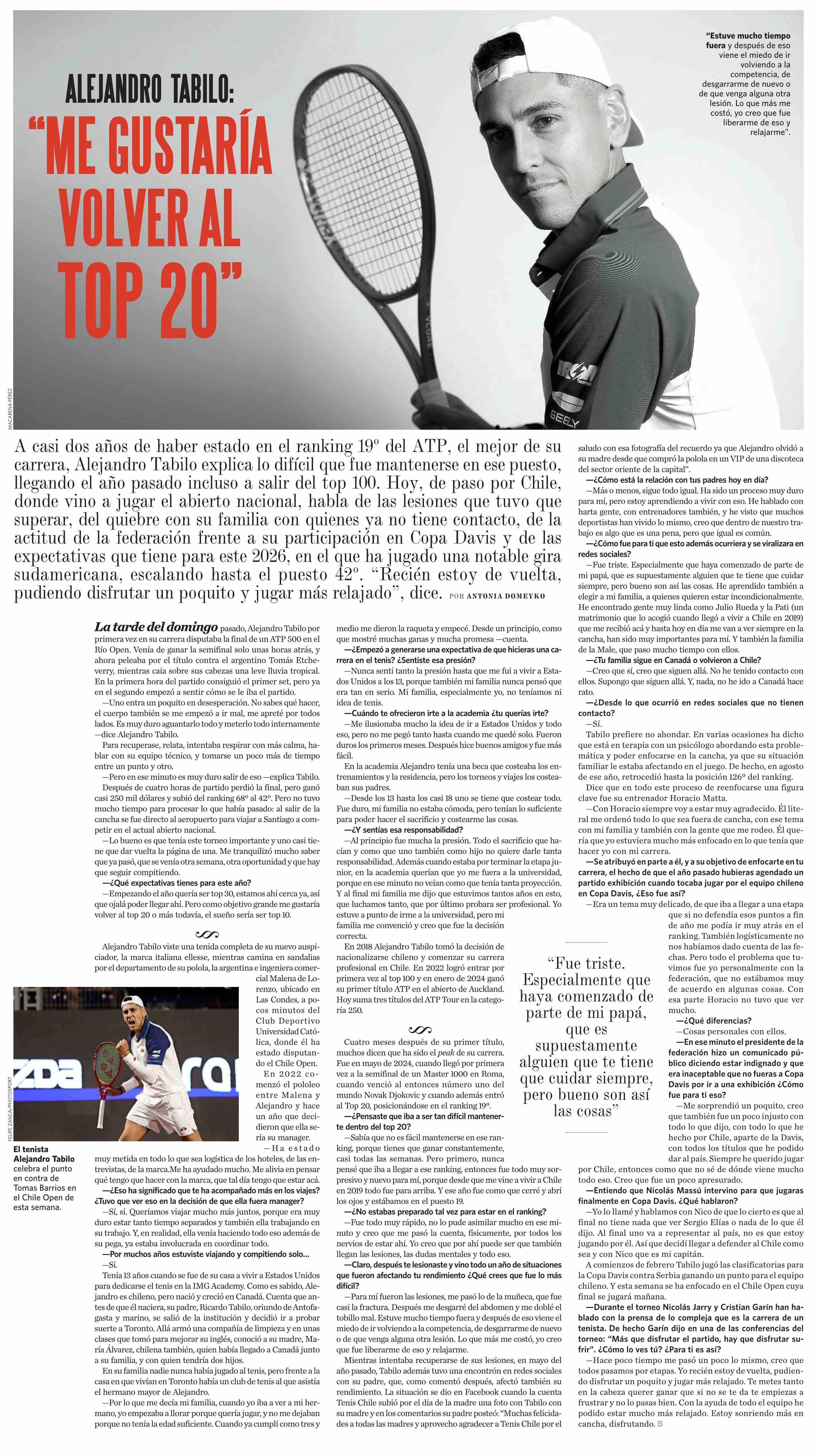 Título: ALEJANDRO TABILO: “ME GUSTARÍA VOLVER AL TOP 20"