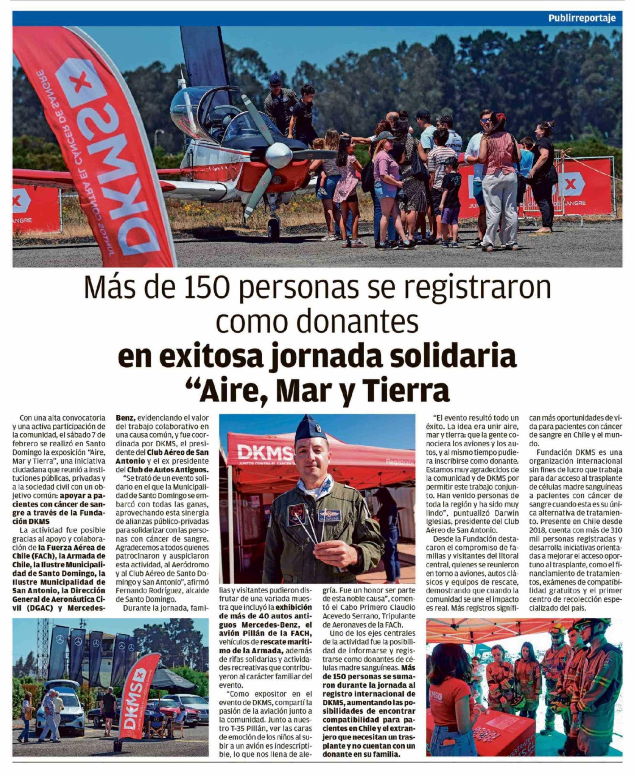 Más de 150 personas se registraron como donantes en exitosa jornada solidaria "Aire, Mar y Tierra